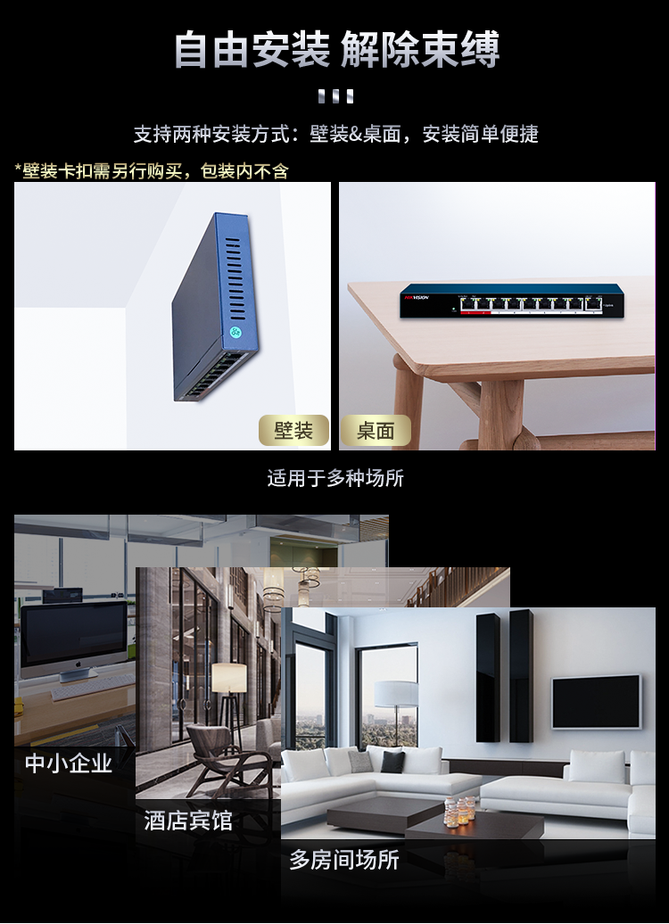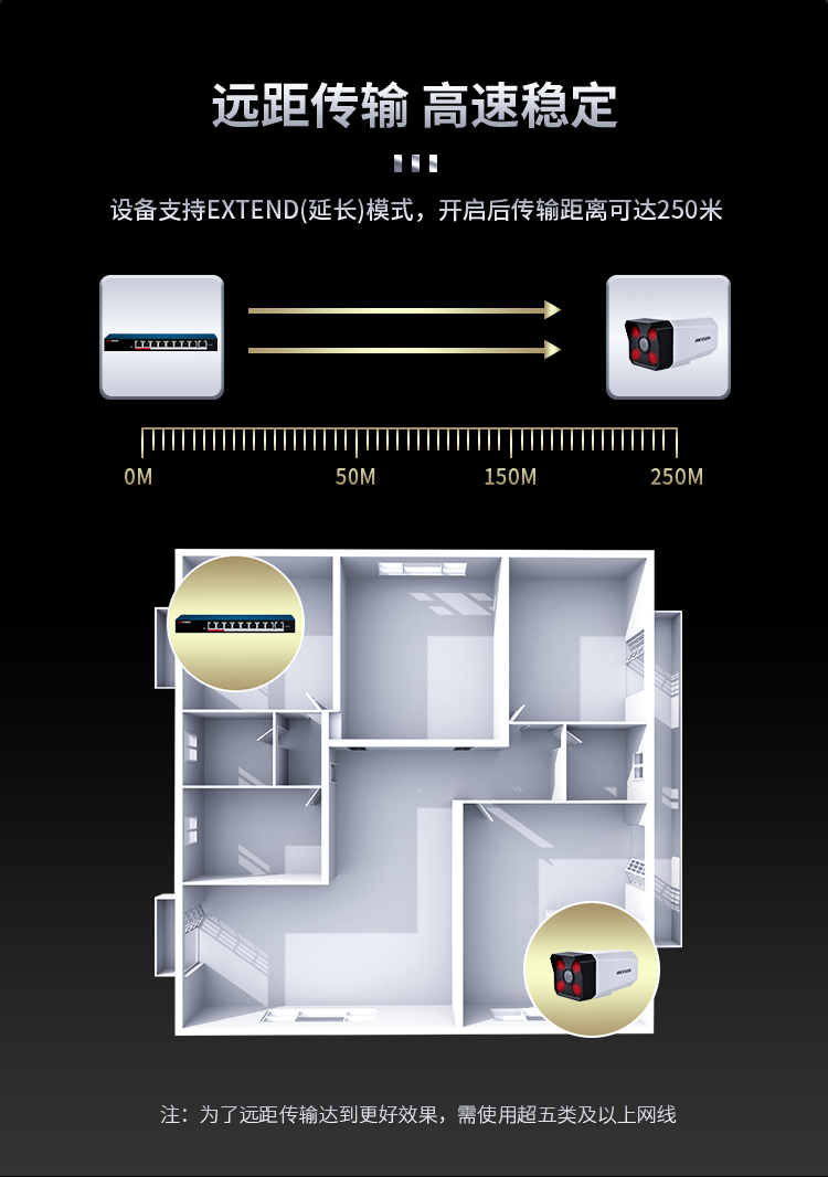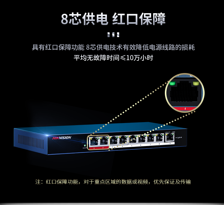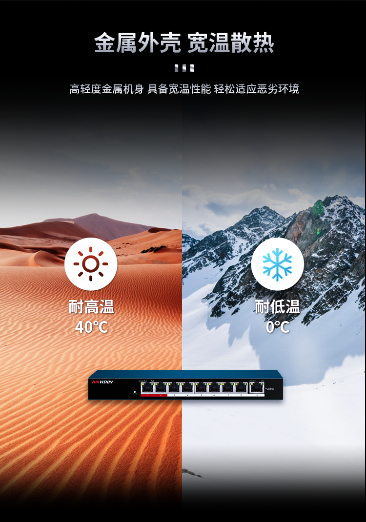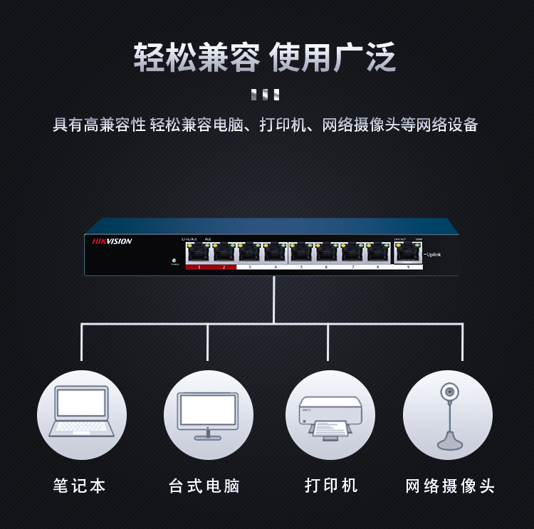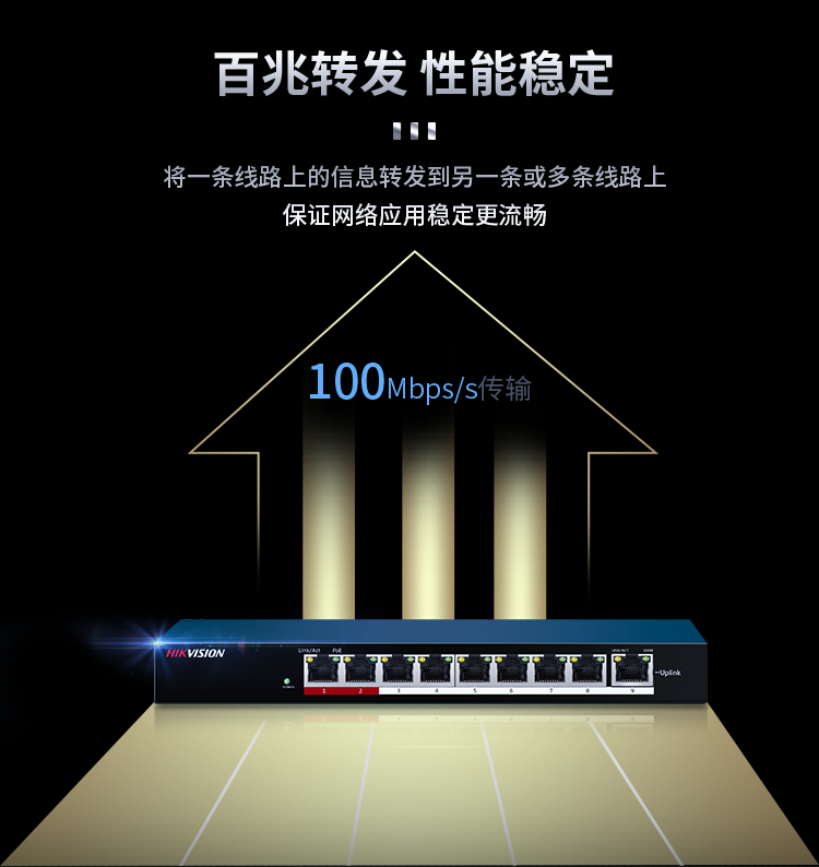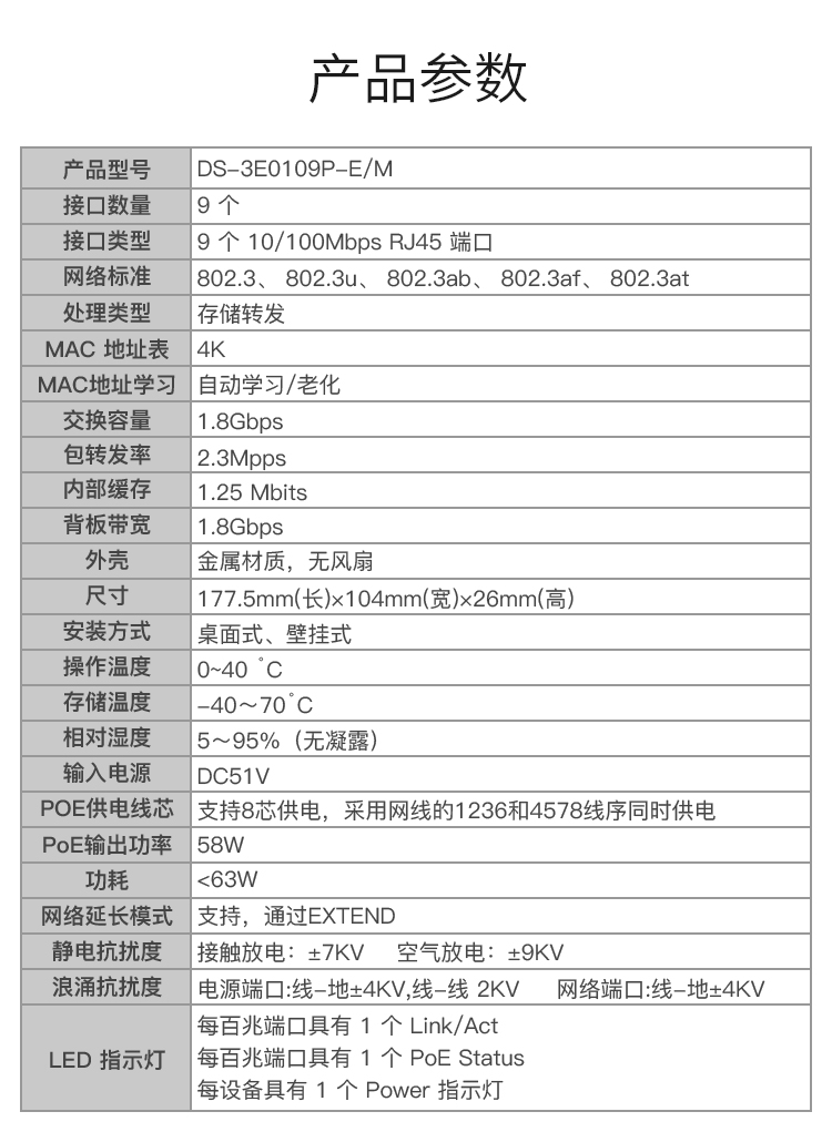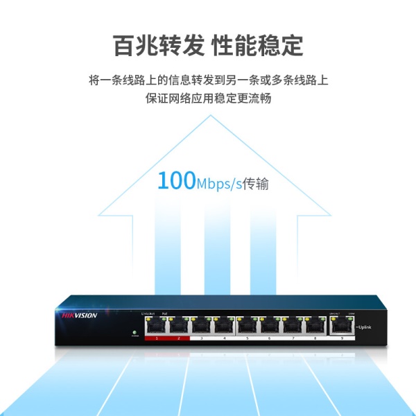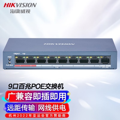 海康威视交换机非网管型8芯POE供电9口百兆自适应网线延长传输模式250米金属机身散热E0109P-E/M