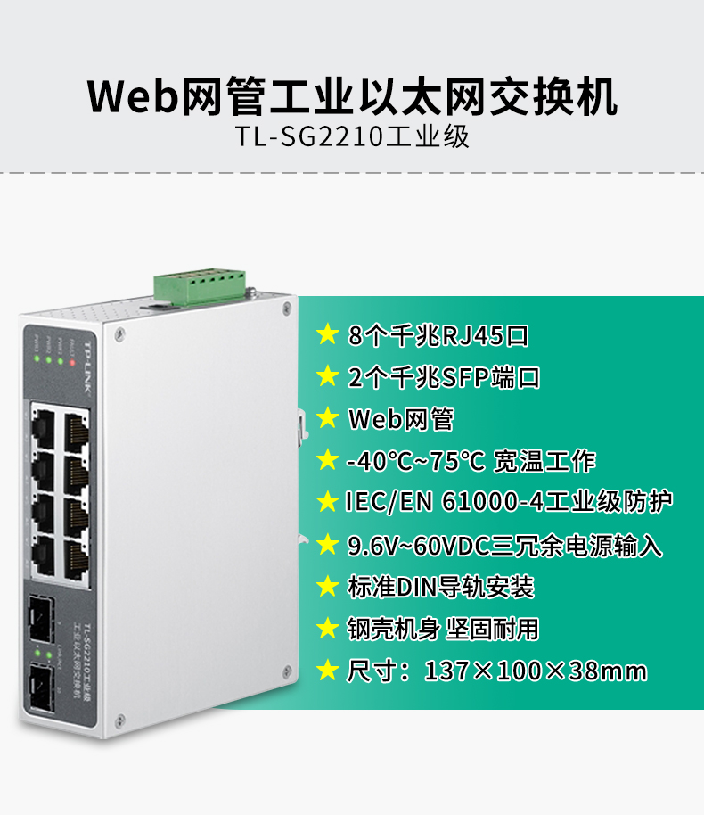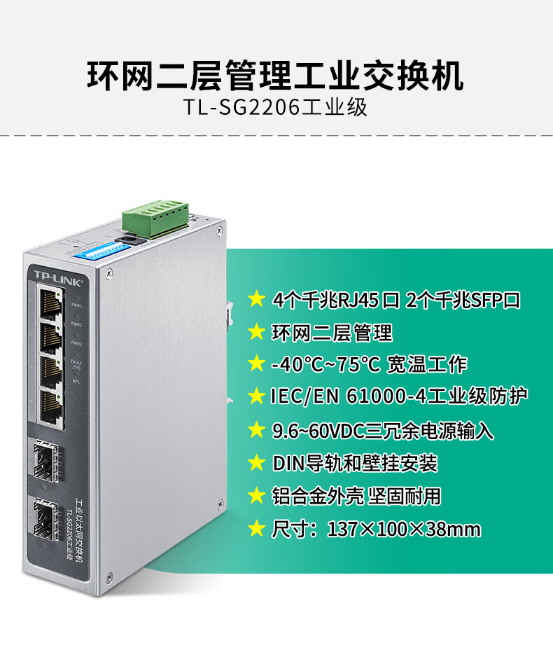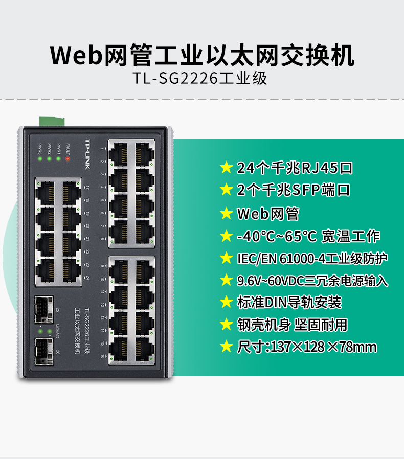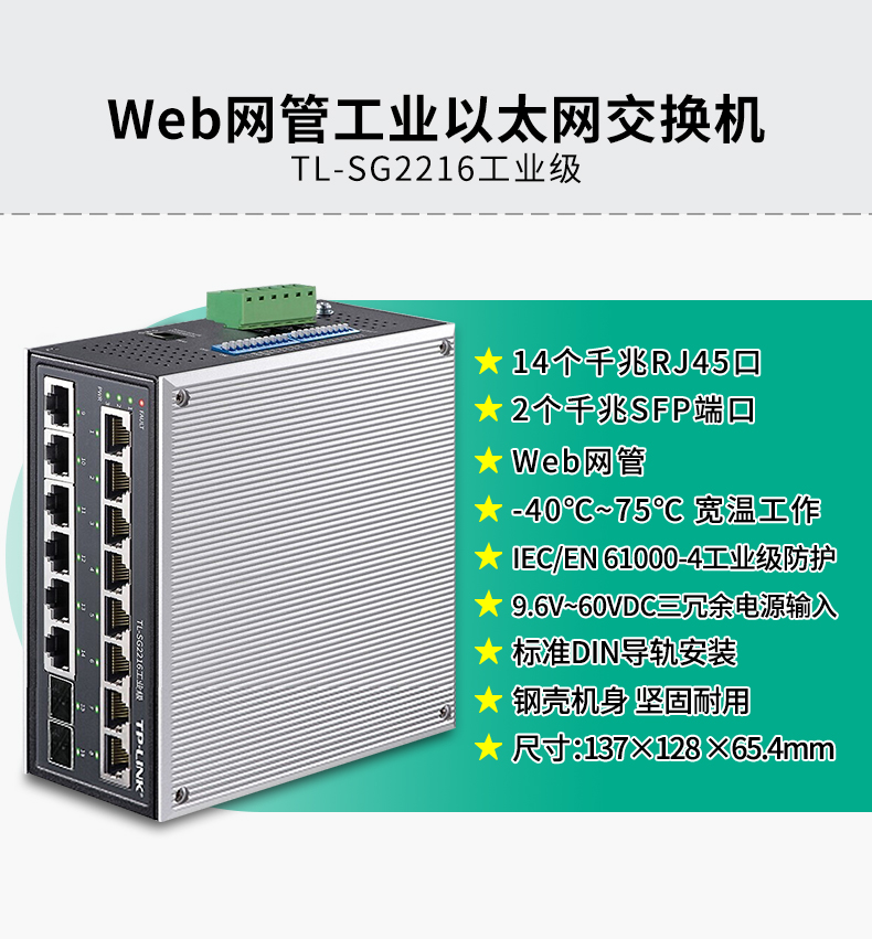 TP-LINK 普联工业以太网交换机 企业网络交换器 网线分线器分流器 DIN导轨壁挂安装 TL-SG2216工业级 14口千兆