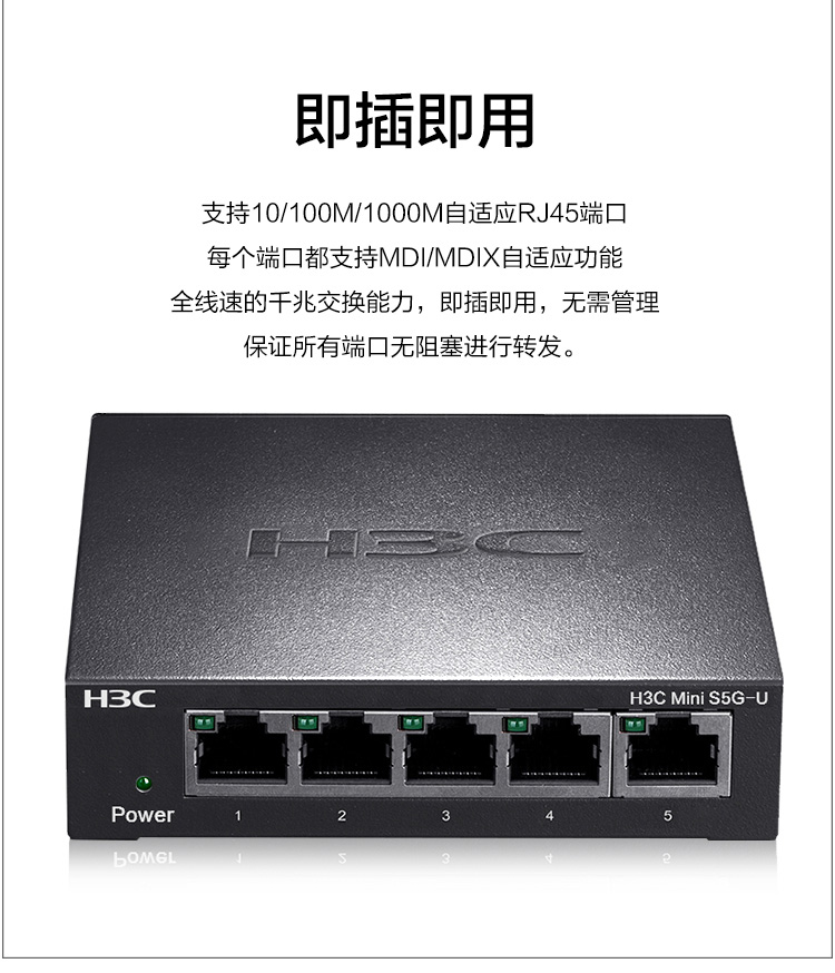 新华三(H3C) 5口千兆非网管交换机 企业级交换器 网络网线分线器 分流器 Mini