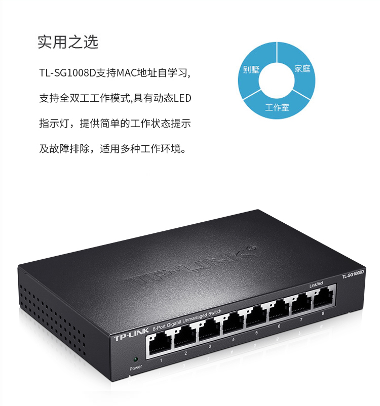普联(TP-LINK) 8口交换机千兆 企业级交换器 监控网络网线分线器 分流器