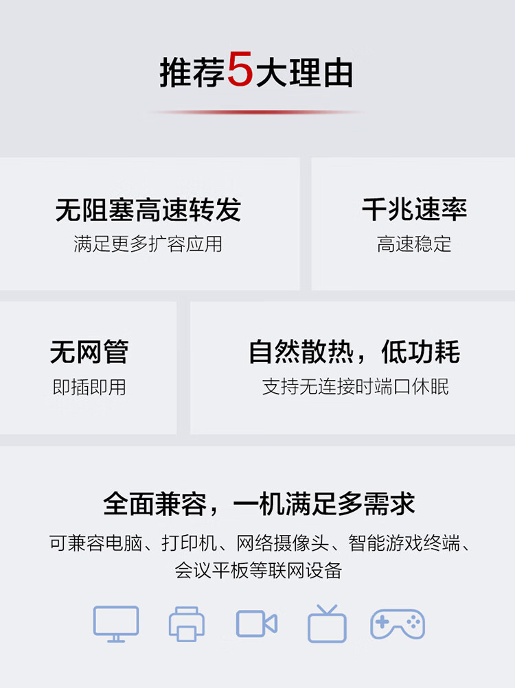 华为数通智选5口千兆交换机4口千兆电1千兆电口上行S100-4T1T网络分线器网线分流器集线器高速组网家用企业级
