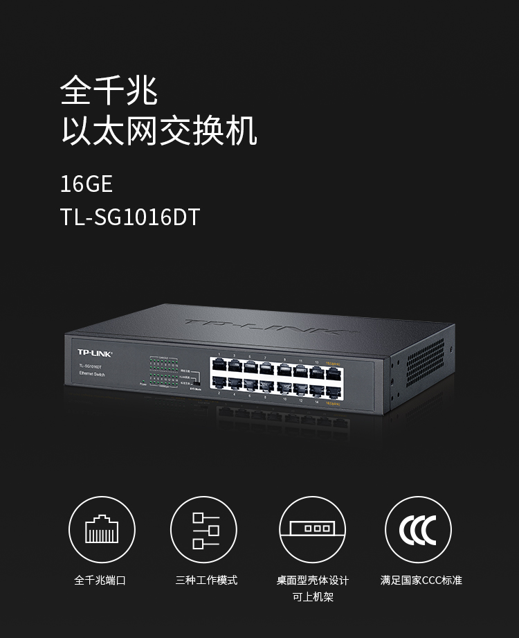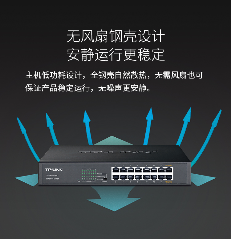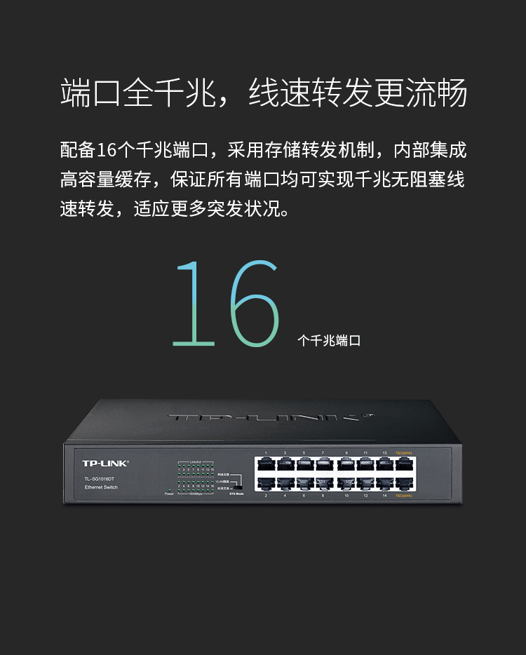 TP-LINK 16口全千兆交换机 非网管T系列 企业级交换器 监控网络网线分线器 分流器