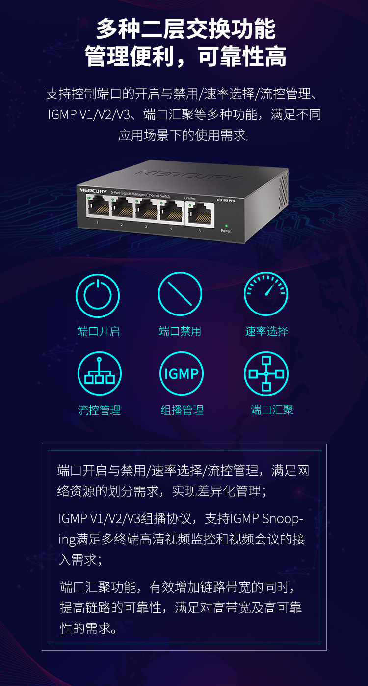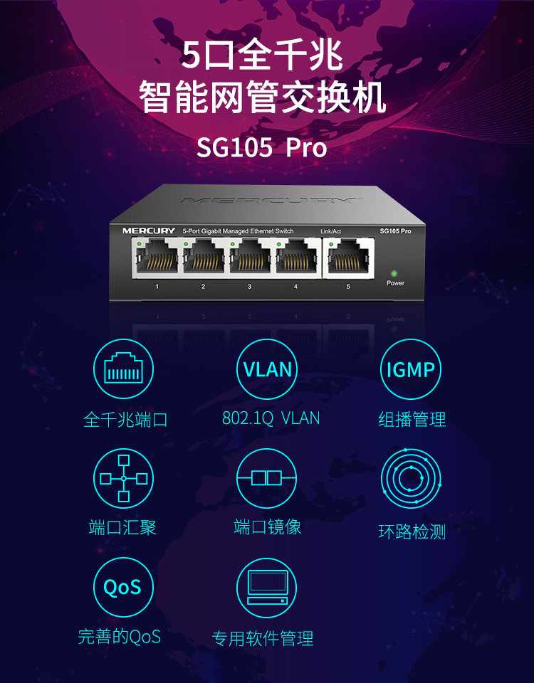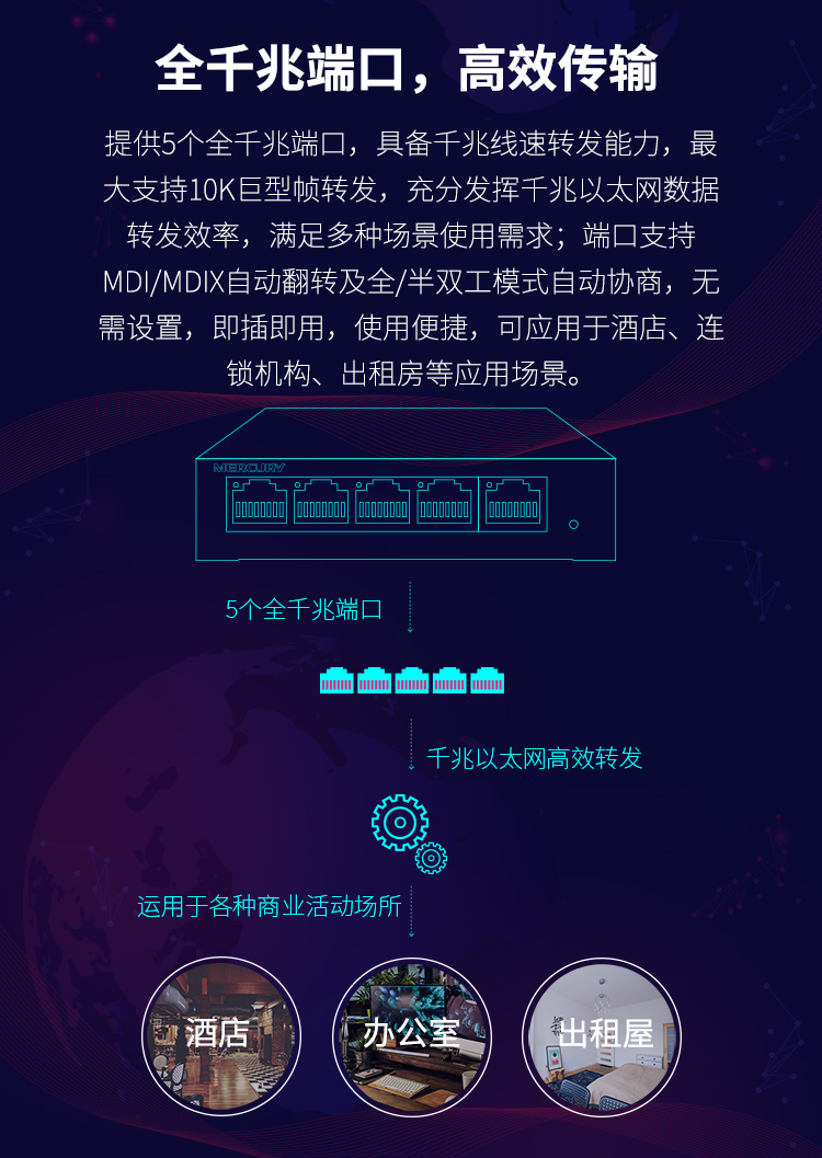 水星(MERCURY)SG105C 5口千兆交换机 4口网线网络分线器
