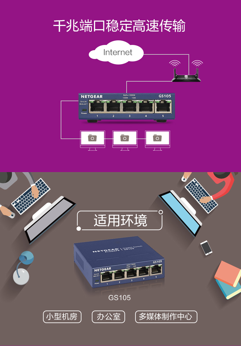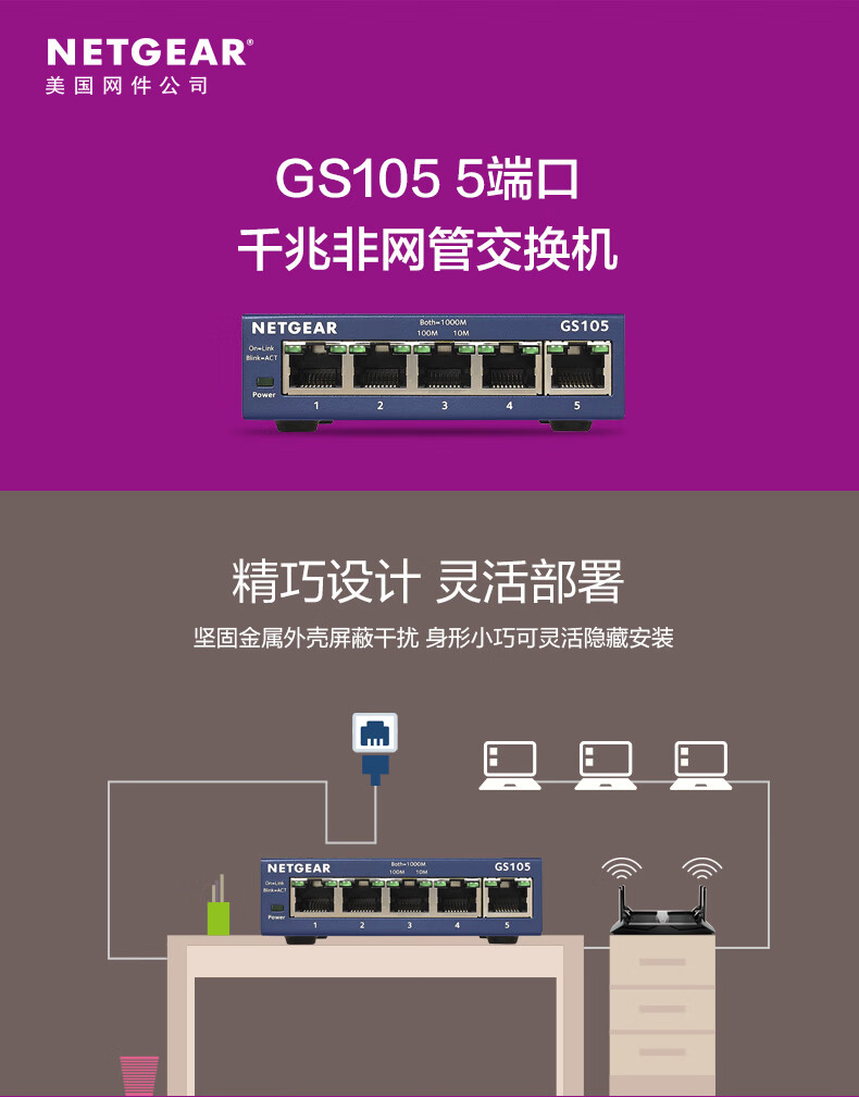 网件(NETGEAR)GS105 5口千兆非网管交换机