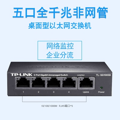 普联(TP-LINK)5口全千兆网络交换机 企业级交换器 监控网络网线分线器 分流器