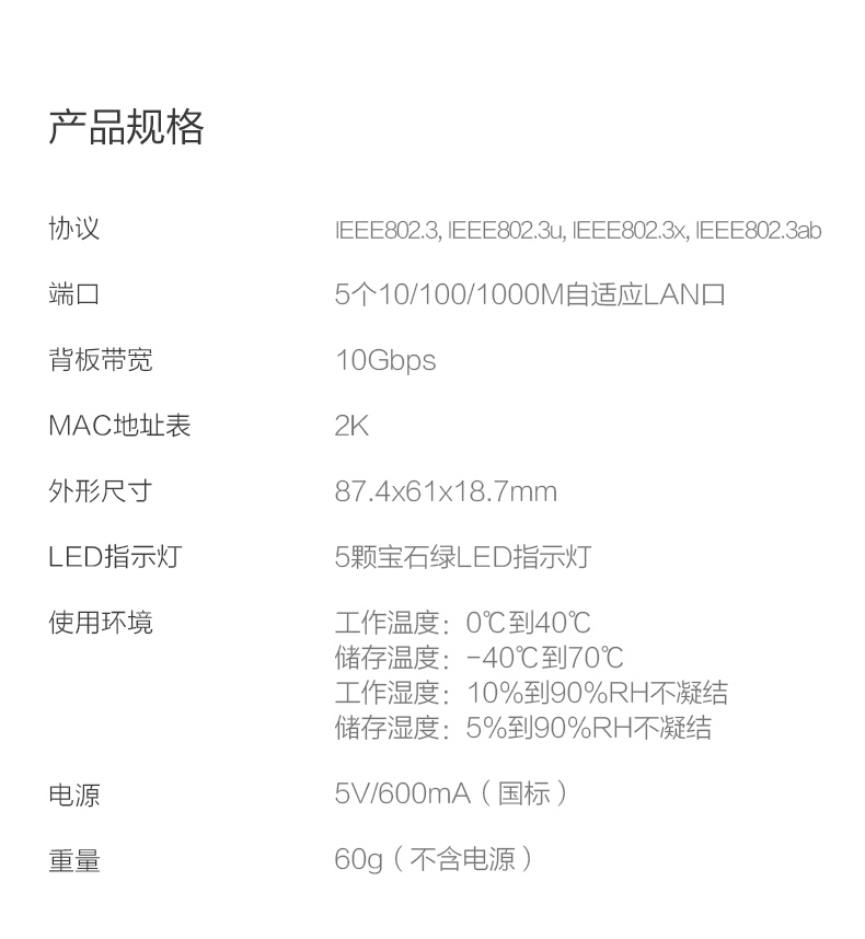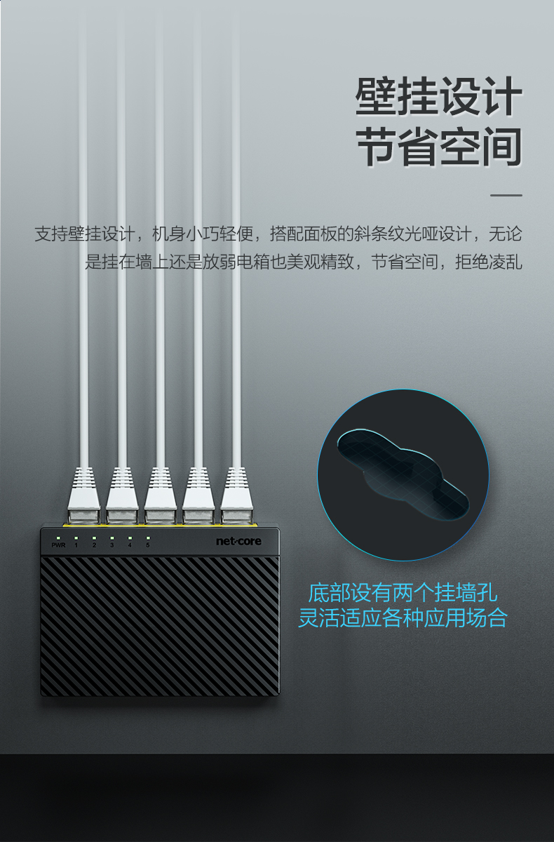 磊科(netcore)S5G 5口千兆交换机 企业级交换器 监控网络小型办公家用宿舍以太网分线器 分流器