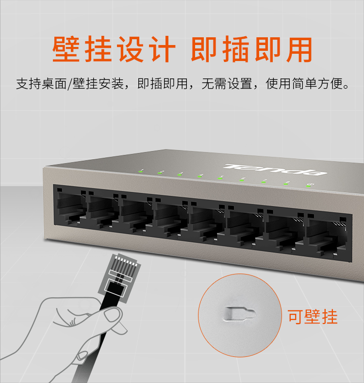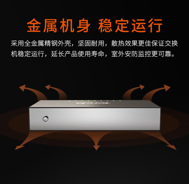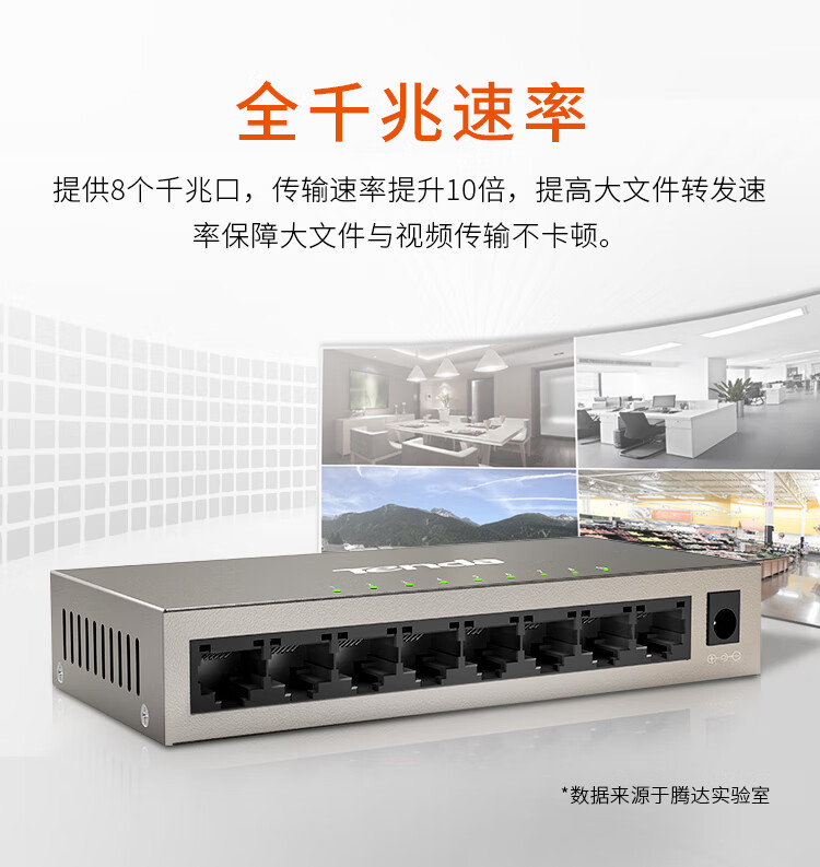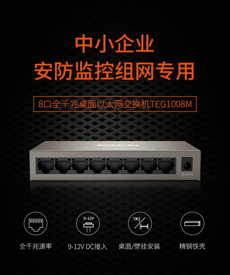 腾达(Tenda)TEG1008M 8口千兆交换机 钢壳壁挂式 安防网络监控摄像头专用分线器