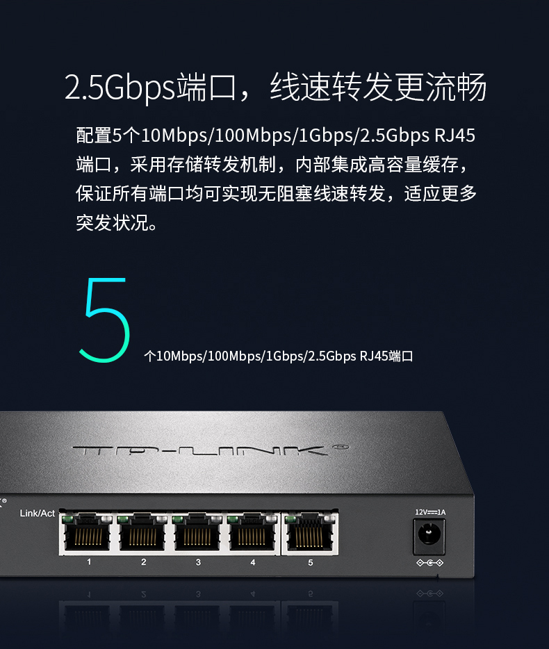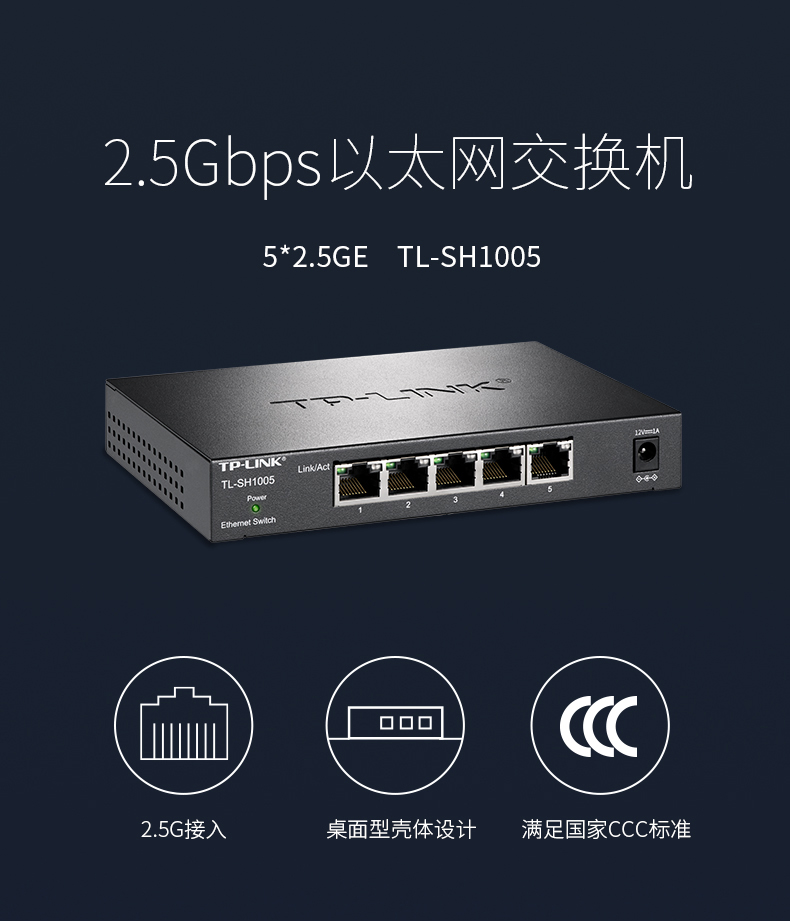 TP-LINK 5口企业级2.5G交换器千兆家用网络分线器集线器tp分流器TL-SH1005