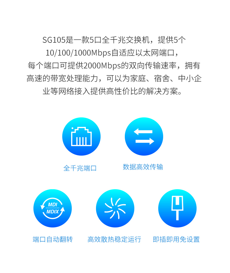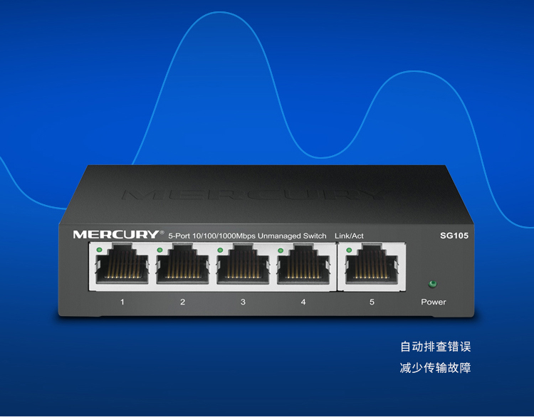 水星(MERCURY)SG105 5口千兆钢壳交换机 4口网线网络分线器