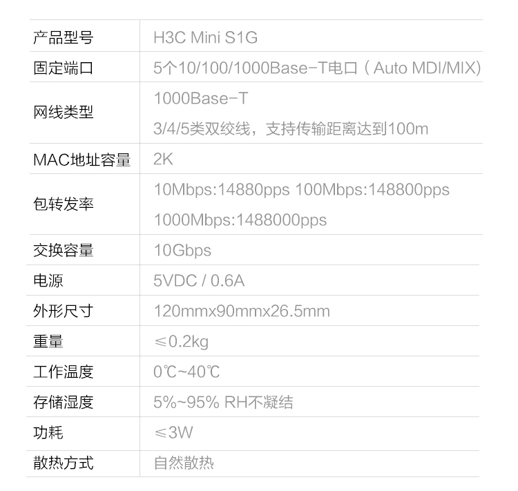 新华三(H3C)5口千兆交换机交换器 监控网络网线分线器分流器