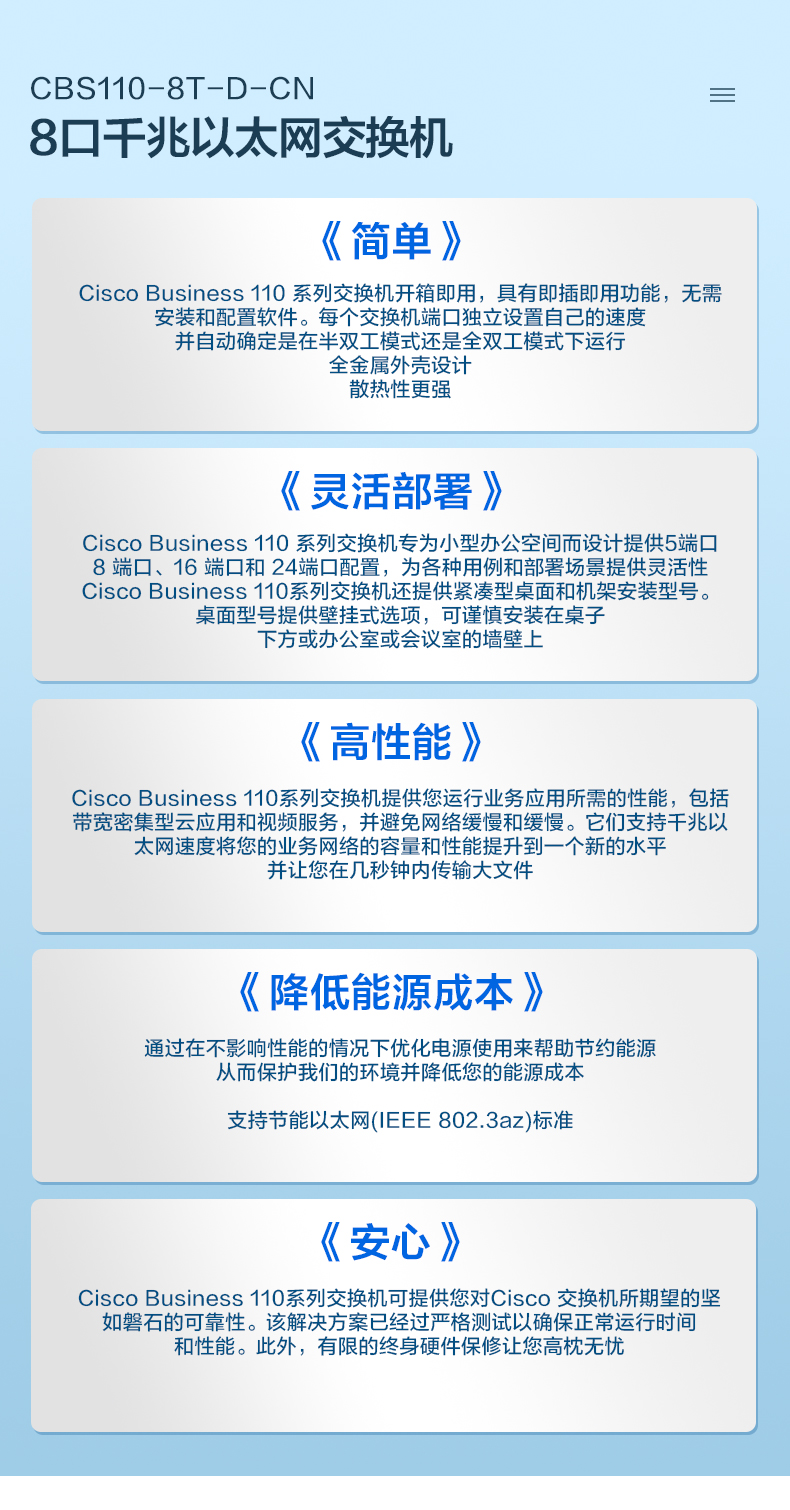 思科(CISCO)交换机 8口千兆交换机