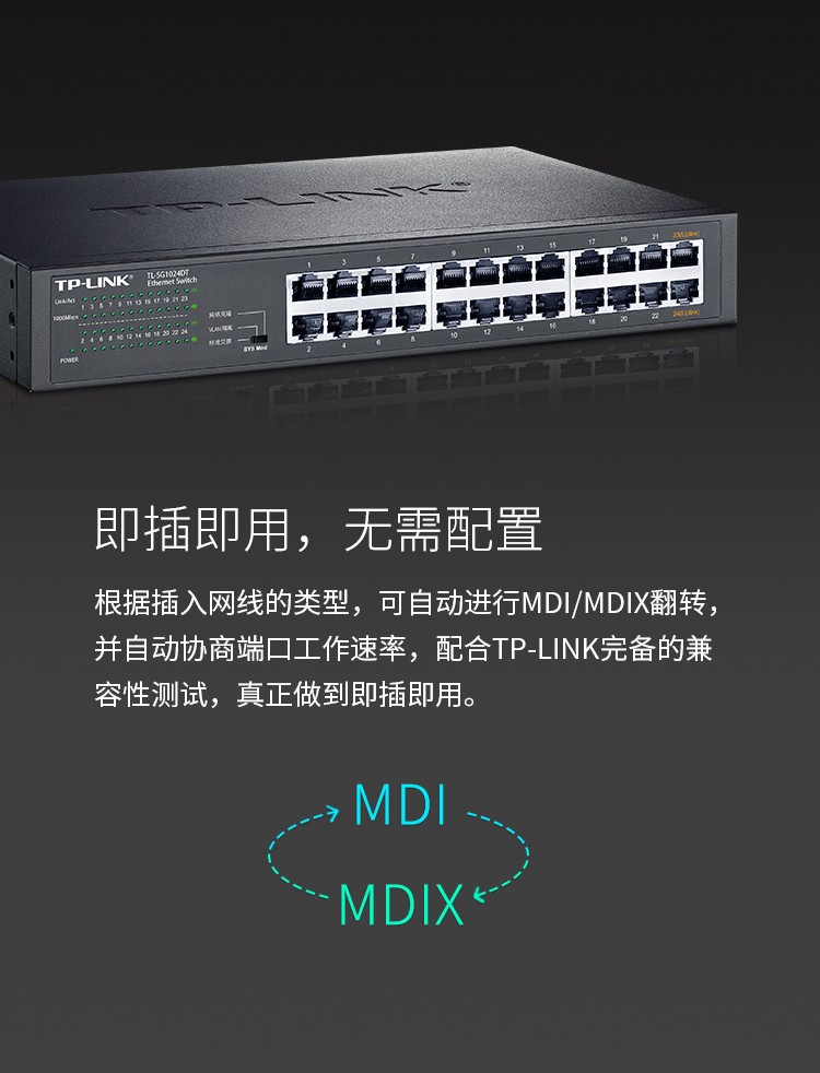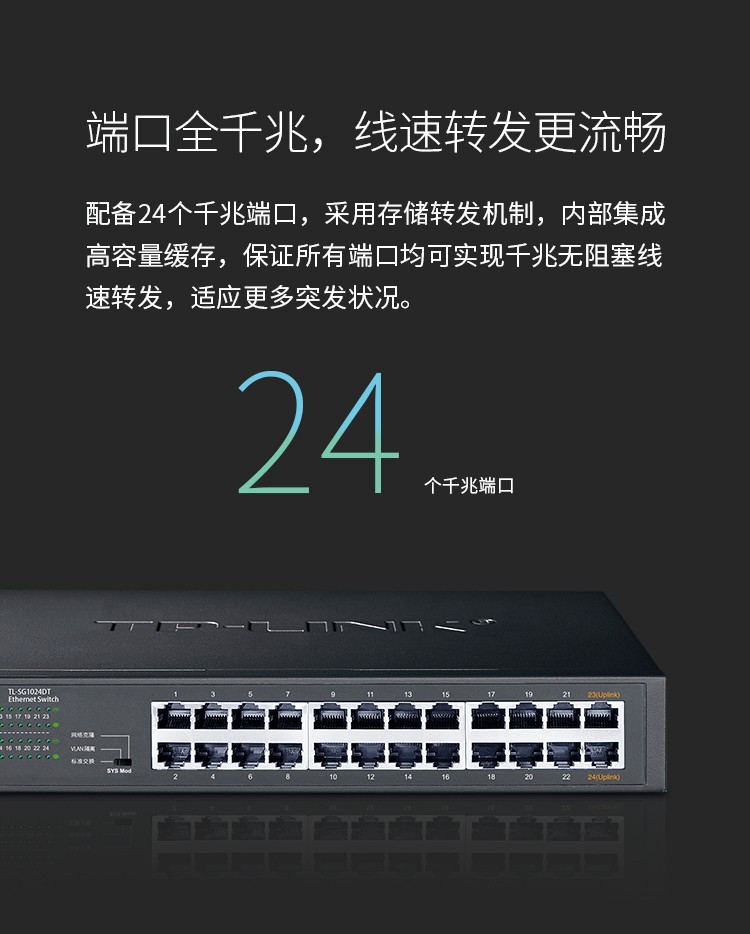 TP-LINK 24口千兆交换机16口以太网企业级交换器非网管分线器分流器