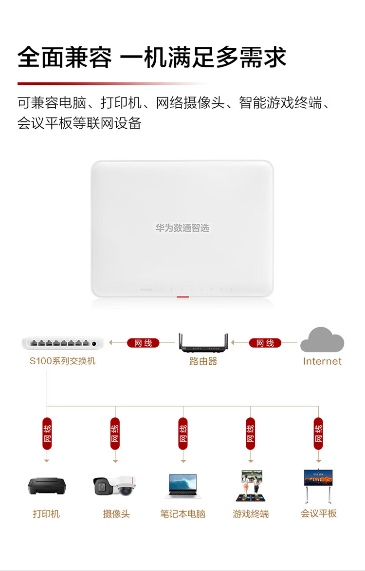 华为数通智选8口交换机千兆8电口S100-8T以太网络家用网线分线器交换器分流器企业小型高速端口替S1700-8G-AC