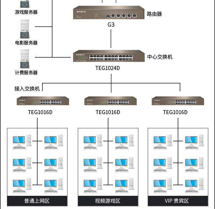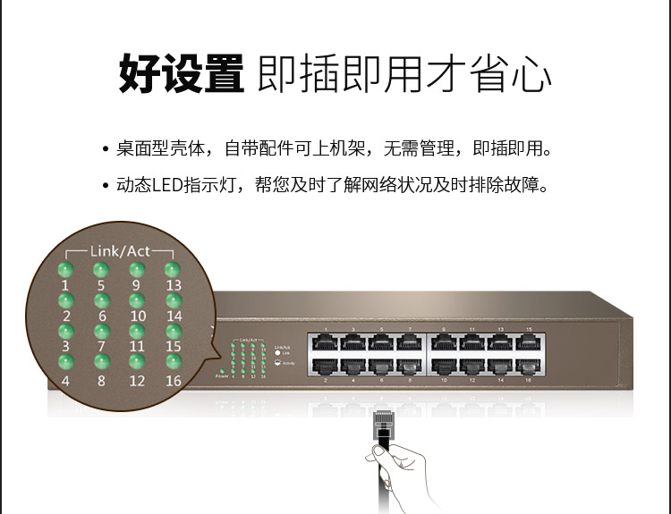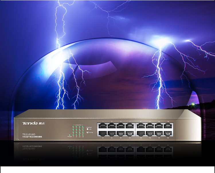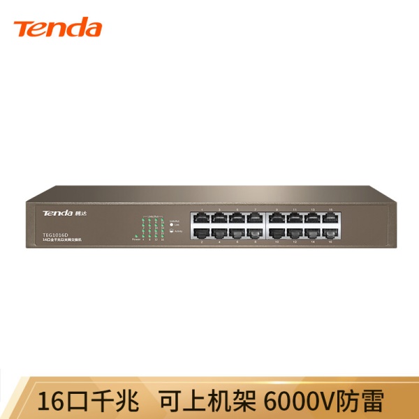 腾达(Tenda)TEG1016D 16口千兆桌面型网络交换机 钢壳机架式 企业工程监控分线器
