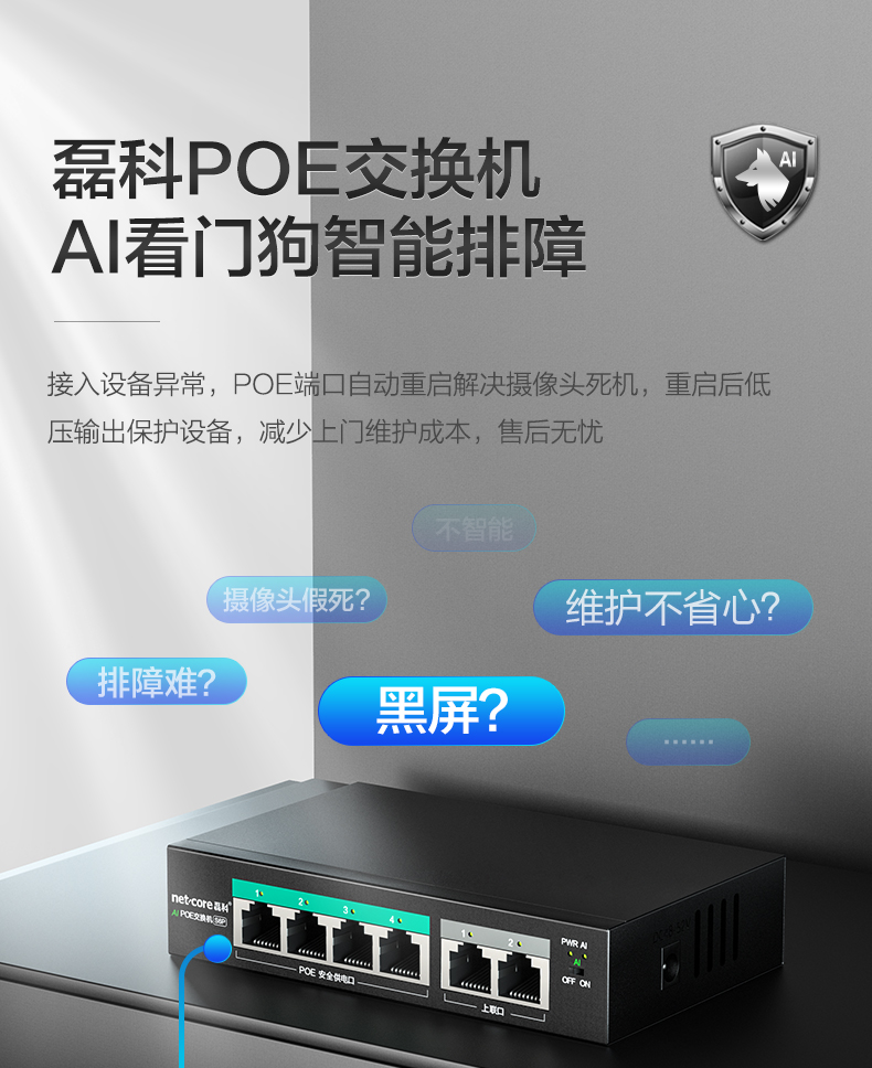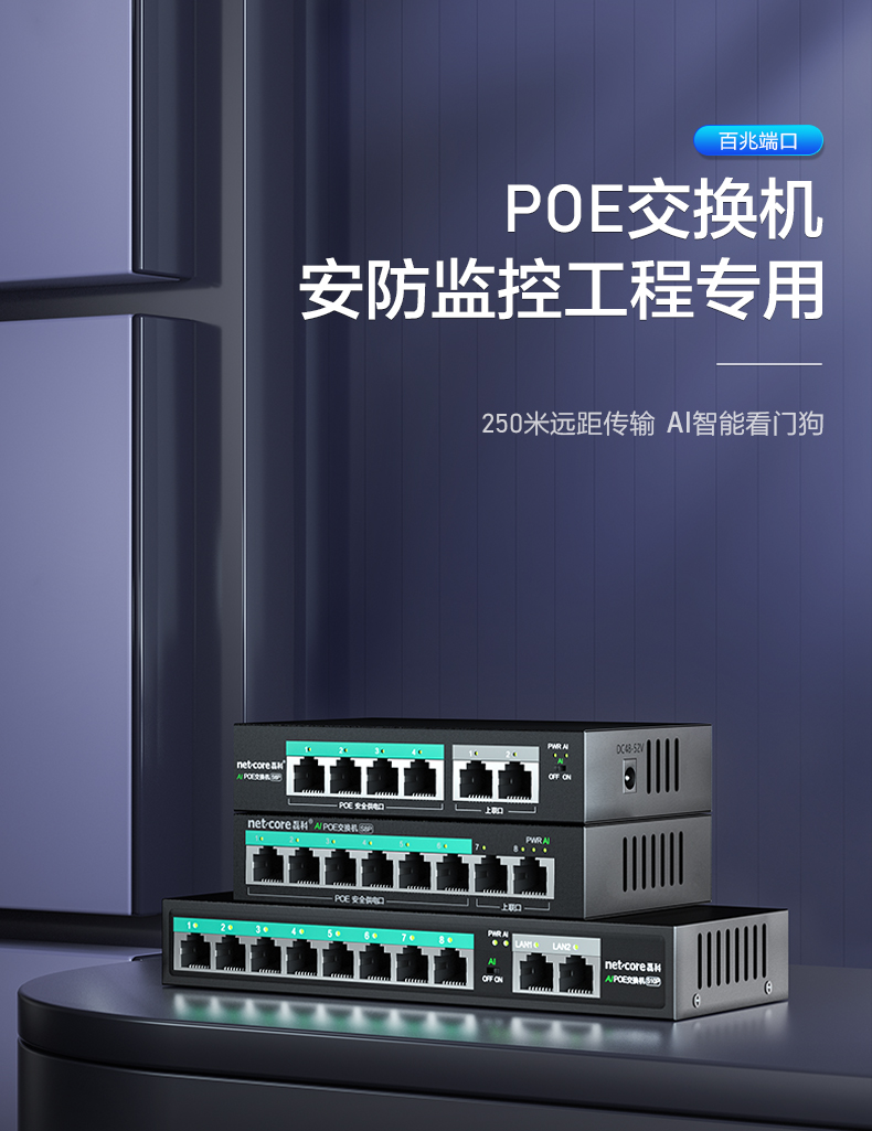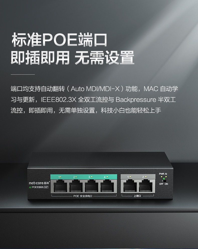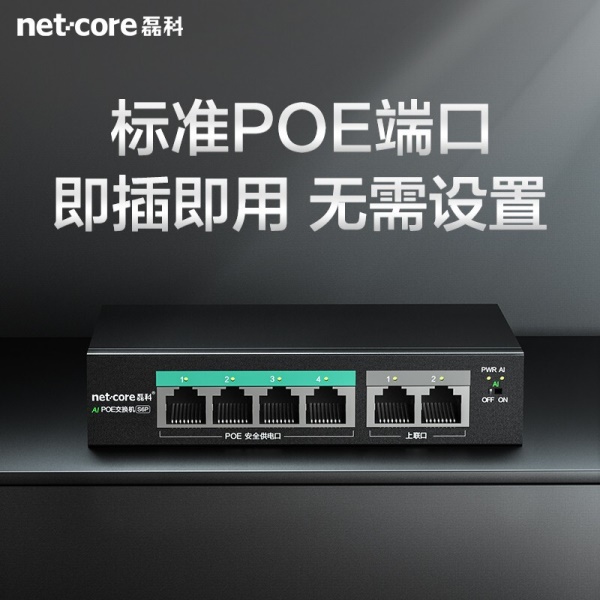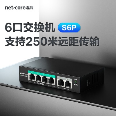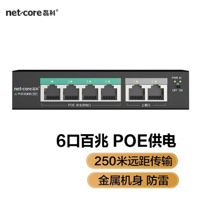 磊科(netcore)S6P 6口百兆POE交换机 5口监控摄像头分离器 非网管网络交换器 网线供电