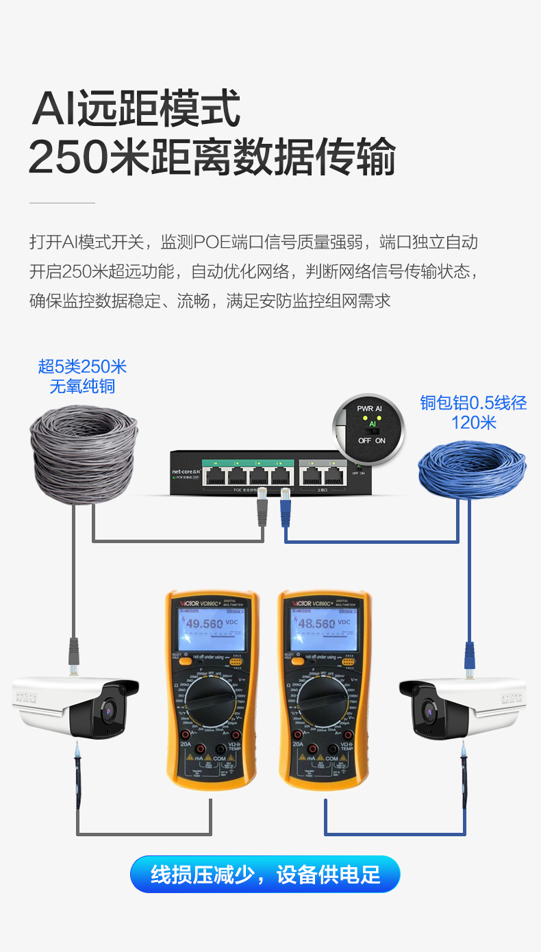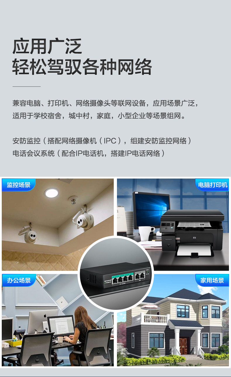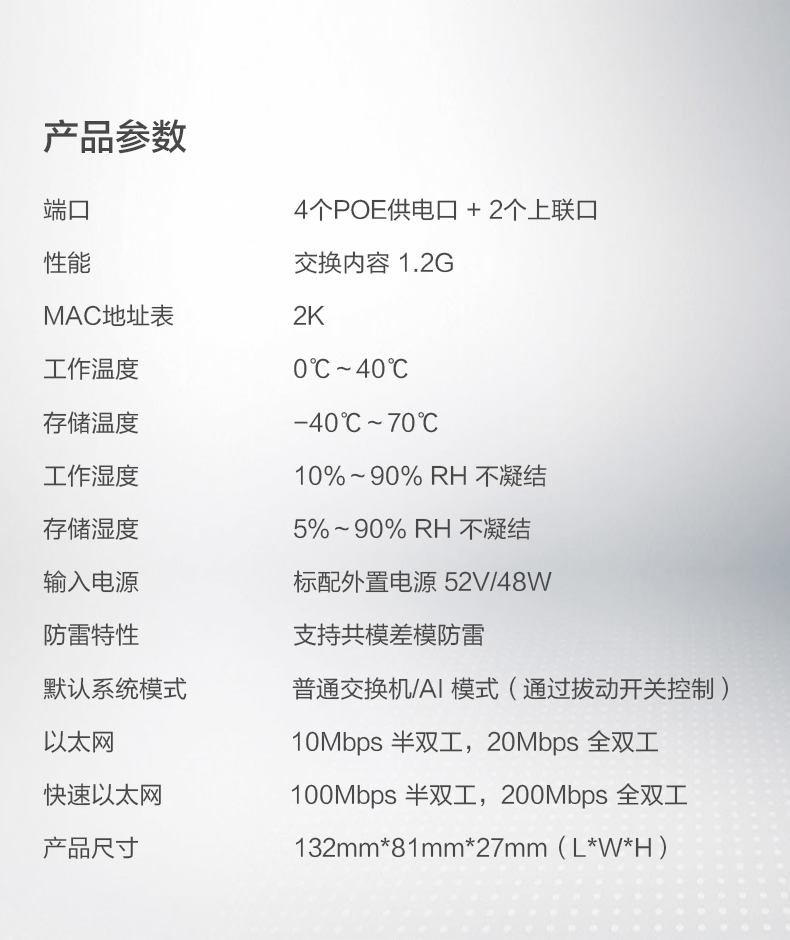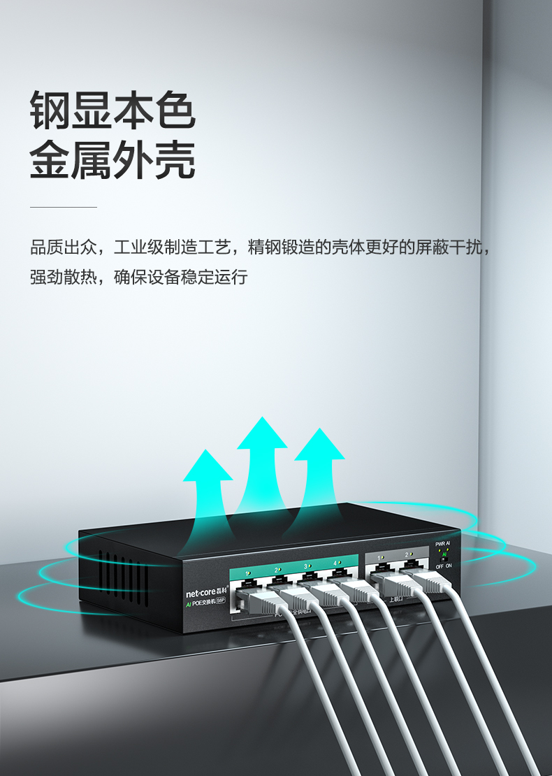 磊科(netcore)S6P 6口百兆POE交换机 5口监控摄像头分离器 非网管网络交换器 网线供电