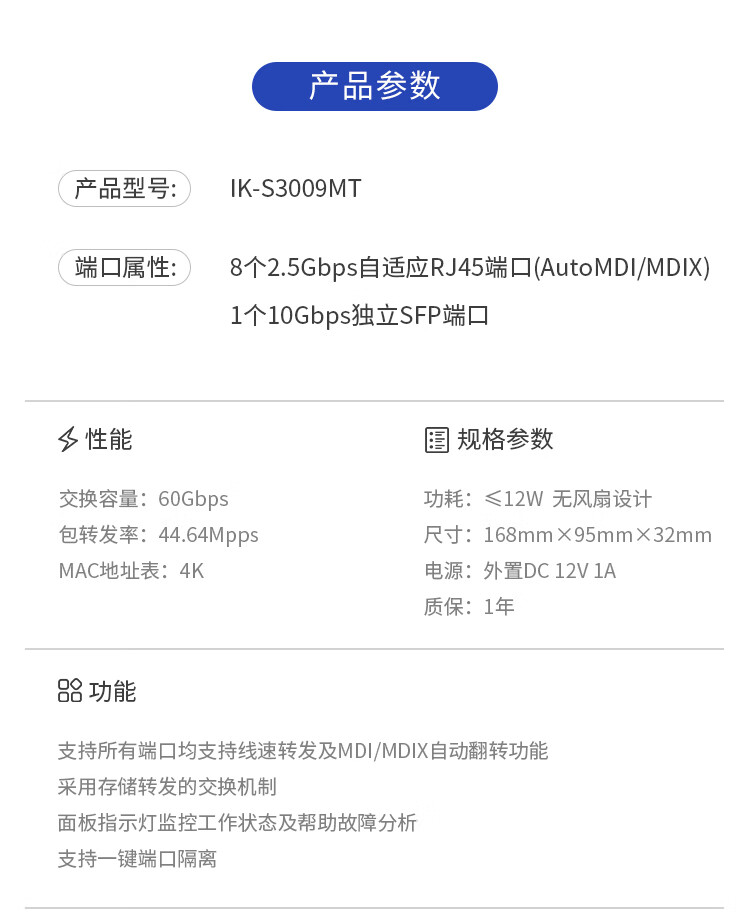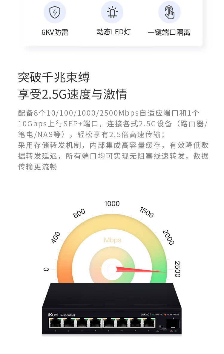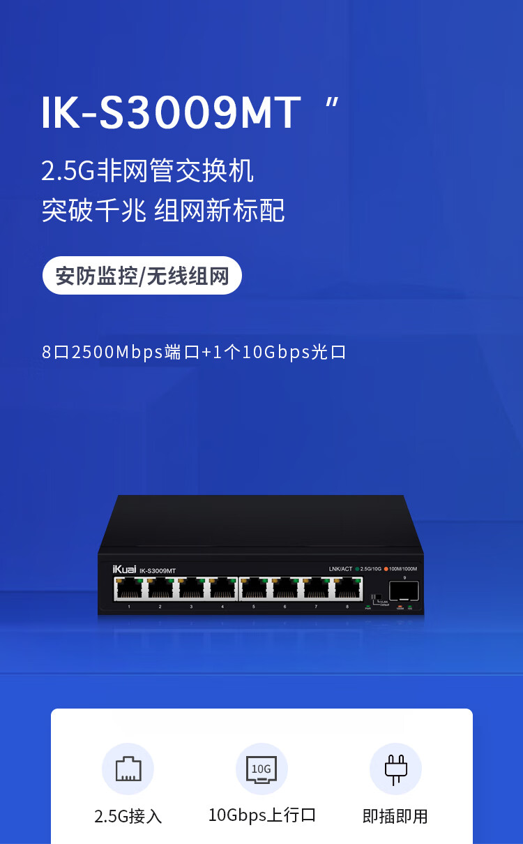 爱快(iKuai)IK-S3009MT 8口企业级2.5G交换机 安防监控/无线组网分线器 监控分流器