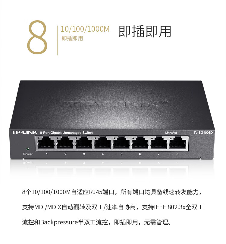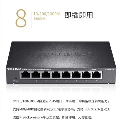 普联(TP-LINK)8口交换机千兆 企业级交换机 金属机身 监控网络网线分线器 分流器
