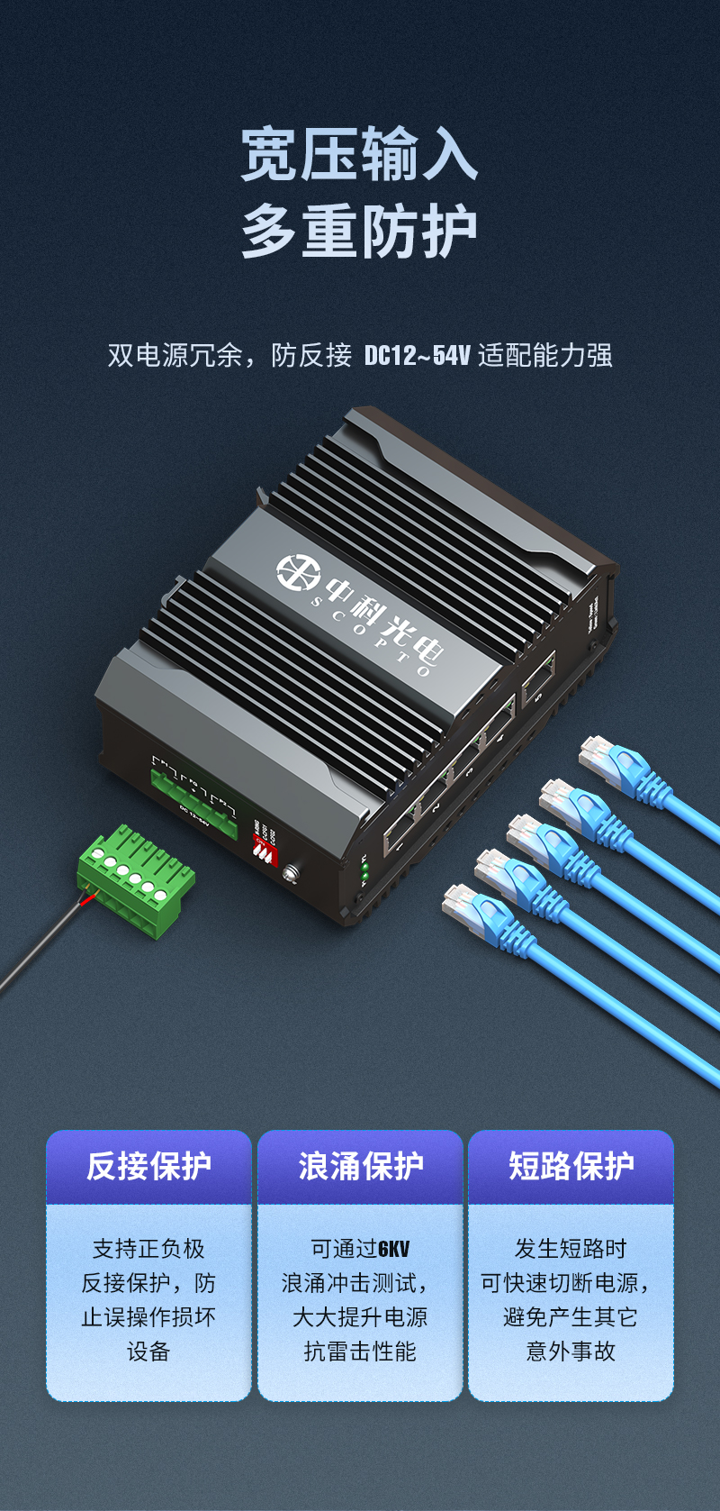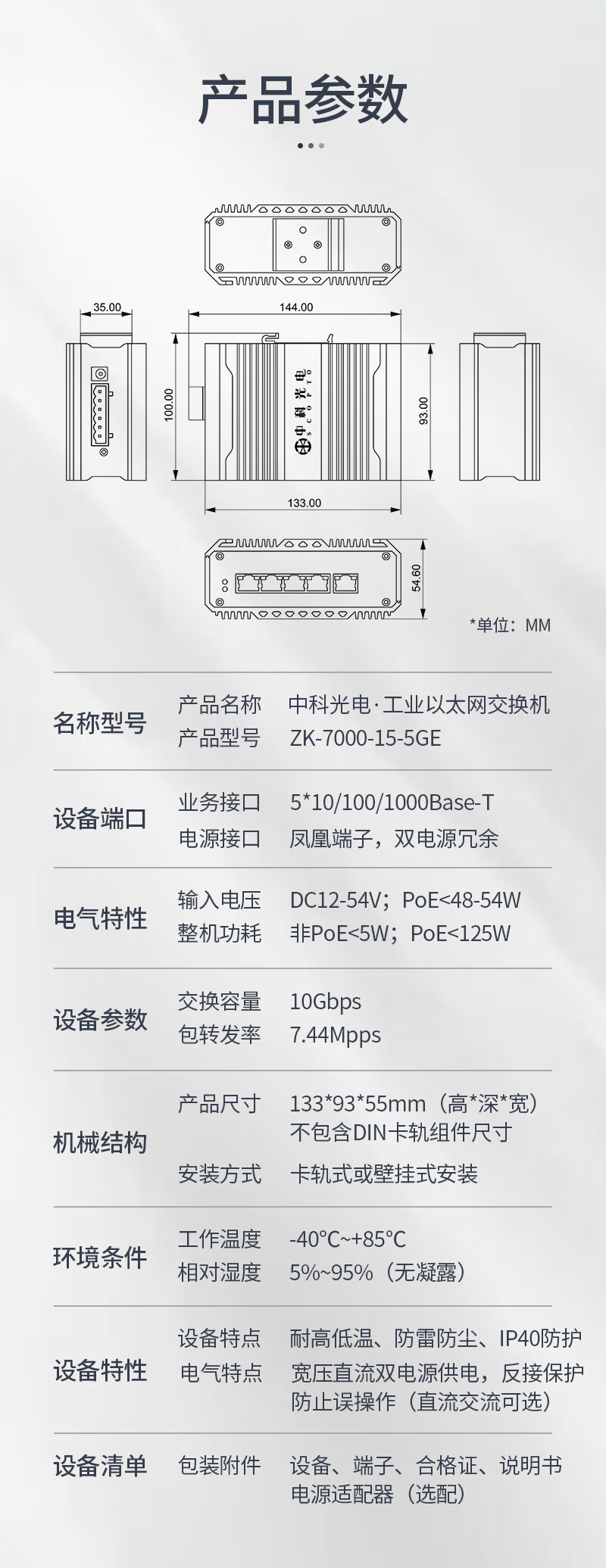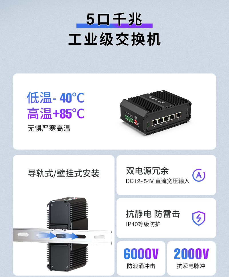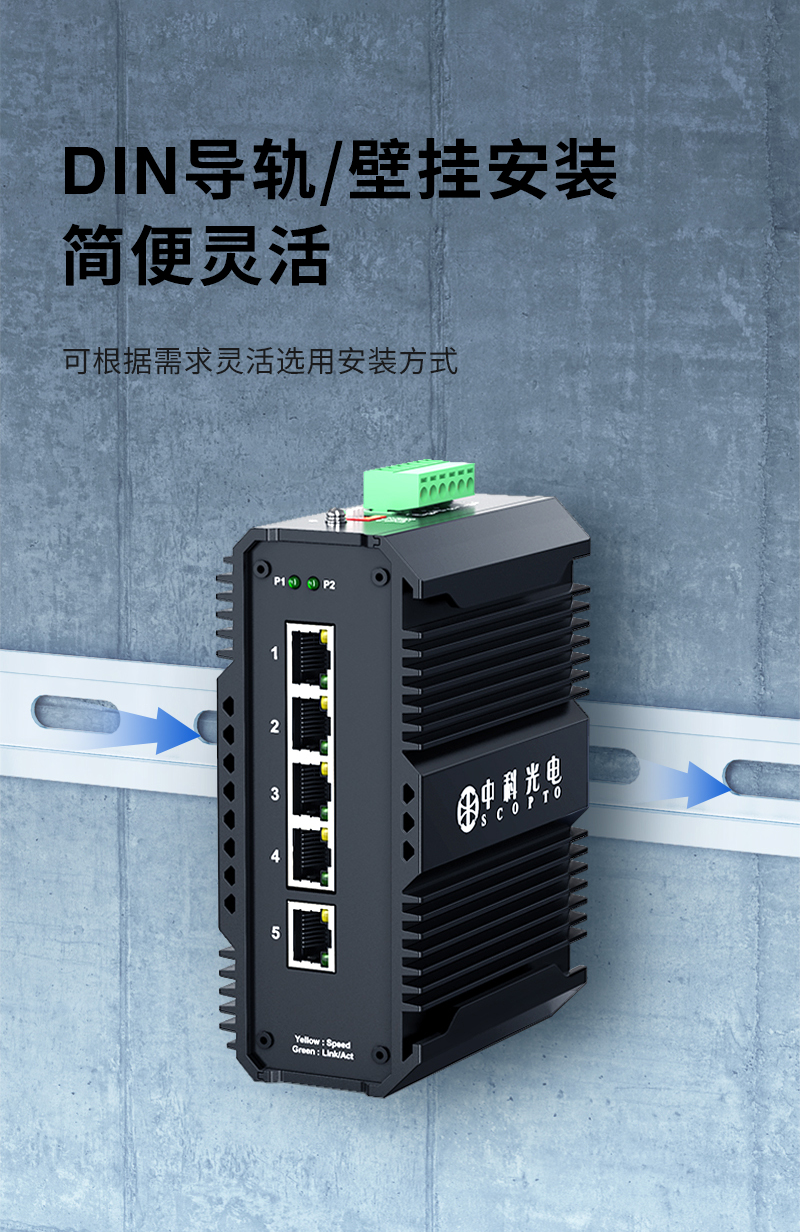 中科光电 工业级5口千兆交换机 安防监控工业以太网交换机