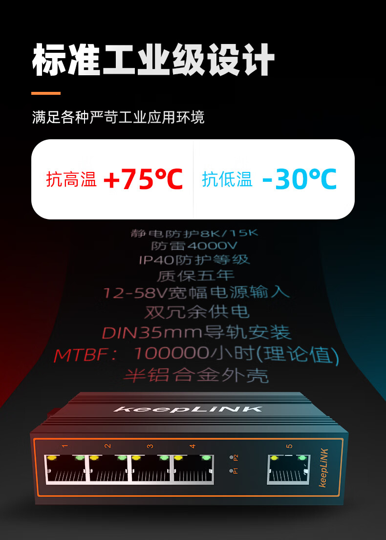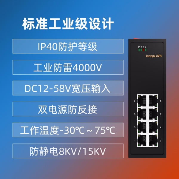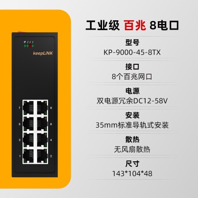 keepLINK 工业交换机 5口8口16口百兆千兆以太网交换机 百兆8口