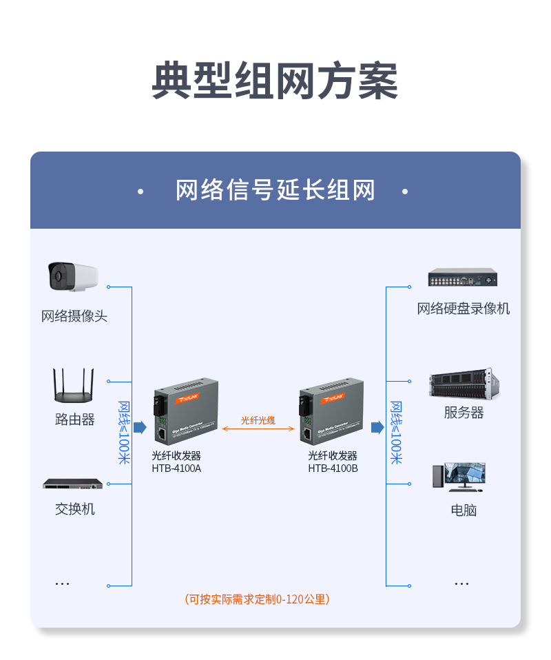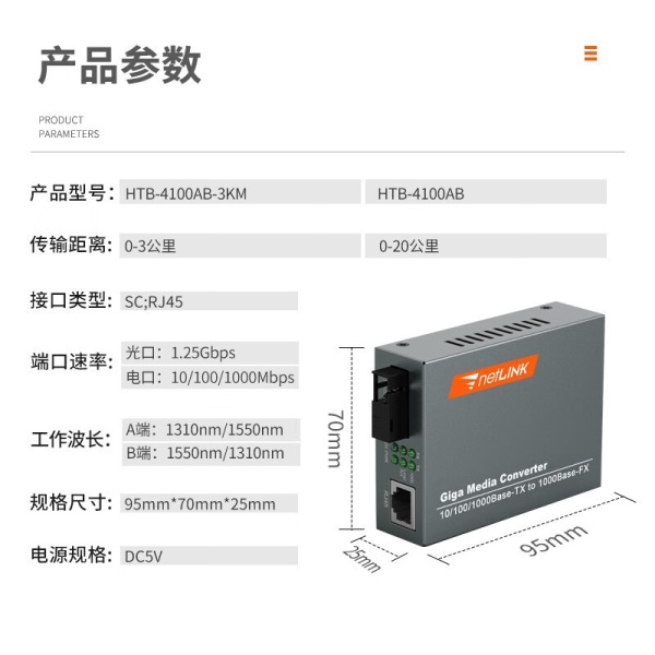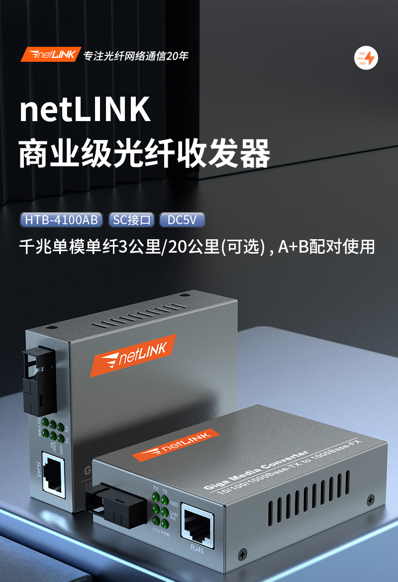netLINK HTB-4100AB 千兆单模单纤光纤收发器 光电转换器 外电 SC接口 一对价