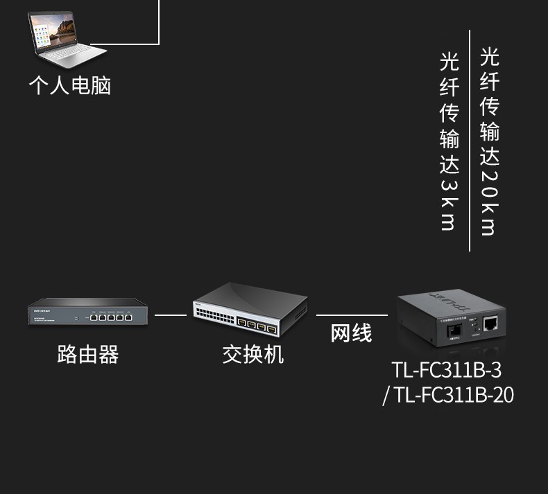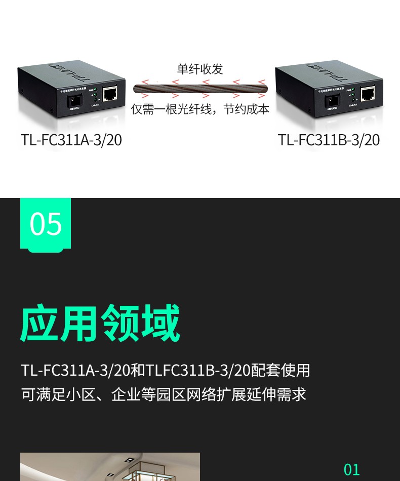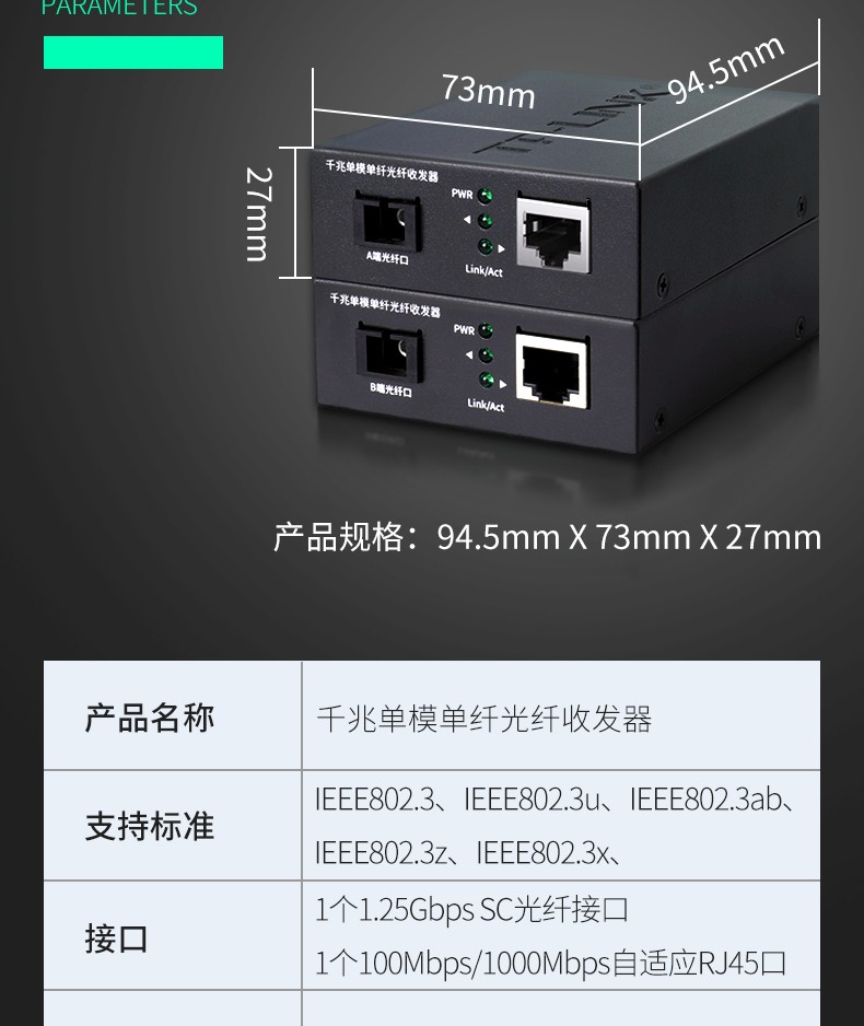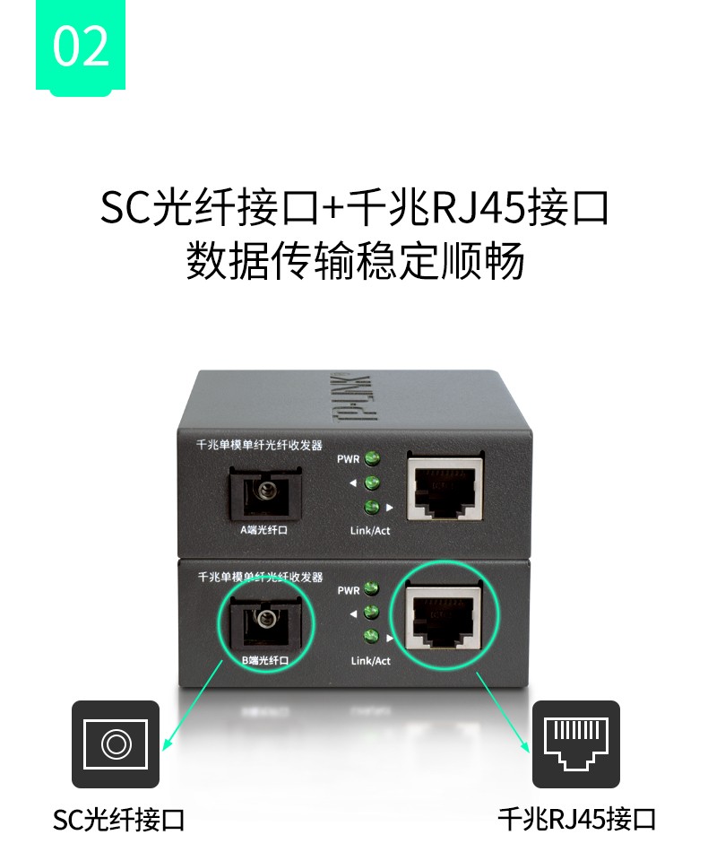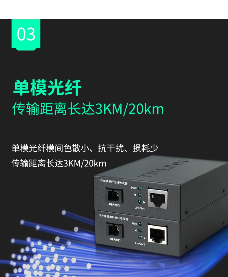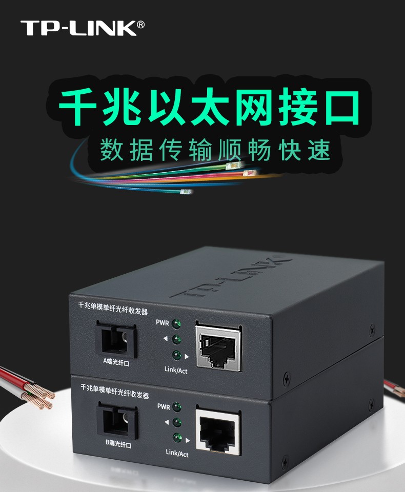 TP-LINK TL-FC311A/B-3套装 单模单纤千兆光纤收发器1000M光电转换器