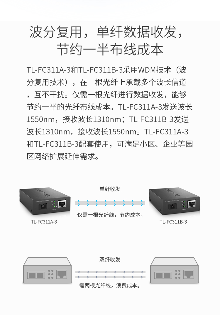 TP-LINK TL-FC311B-3 千兆单模单纤光纤收发器
