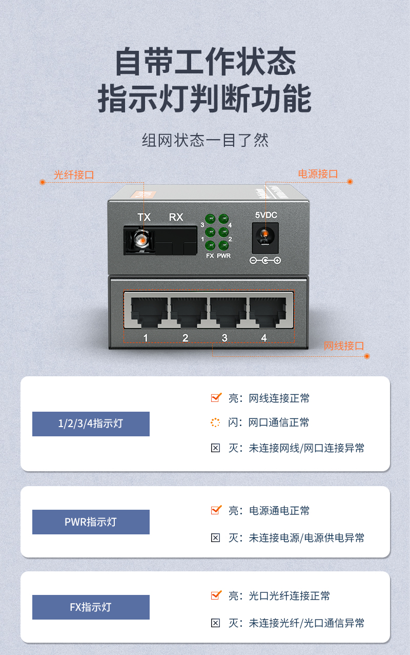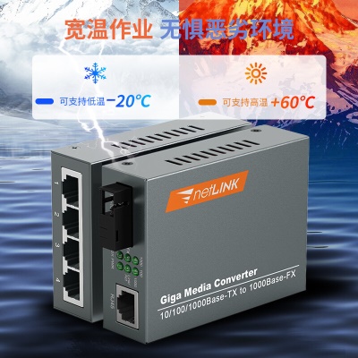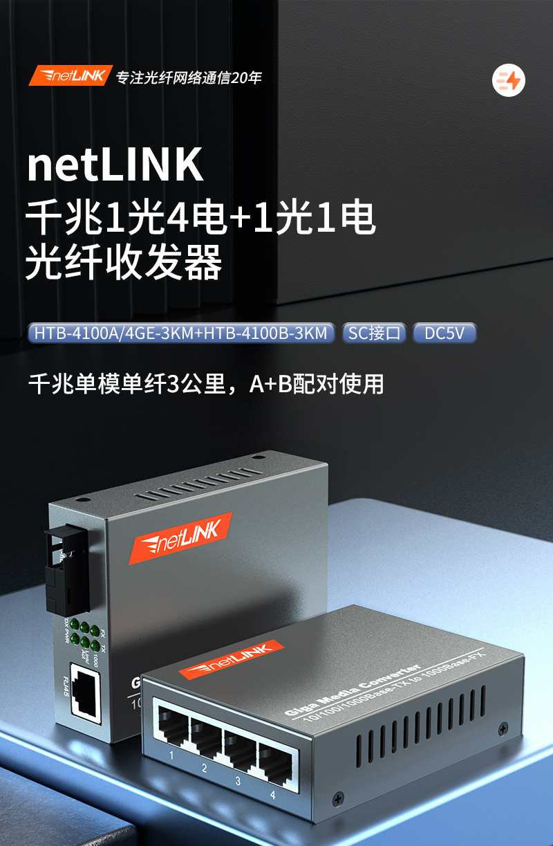 netLINK HTB-4100A/4GE-3KM+HTB-4100B-3KM 千兆单模单纤光纤收发器 光电转换器 1光4电+1光1电套装