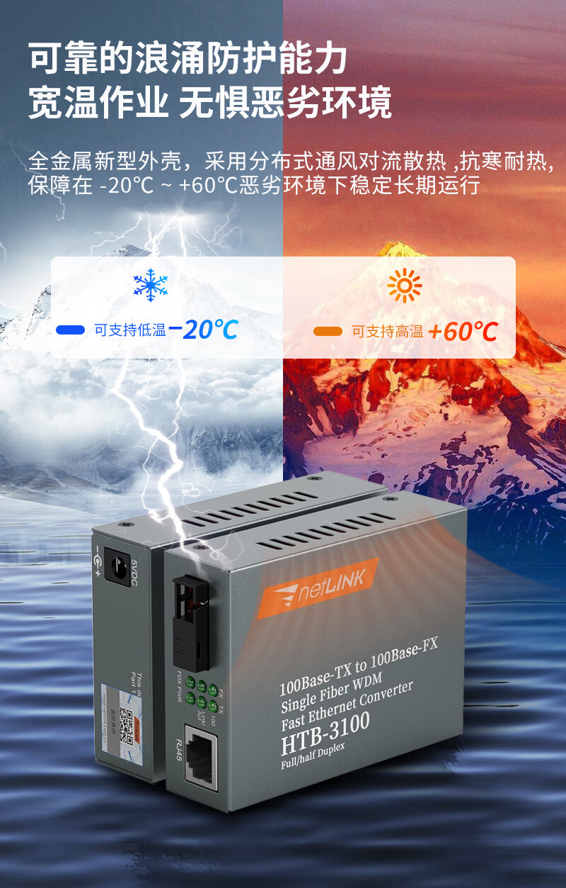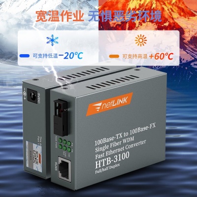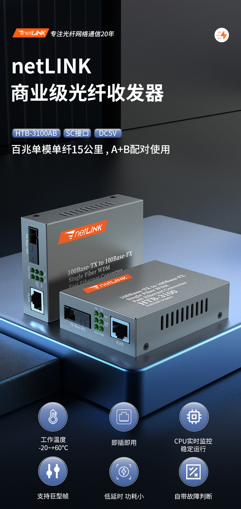 netLINK HTB-3100AB-15KM 光纤收发器 百兆单模单纤光电转换器 0-15公里 DC5V