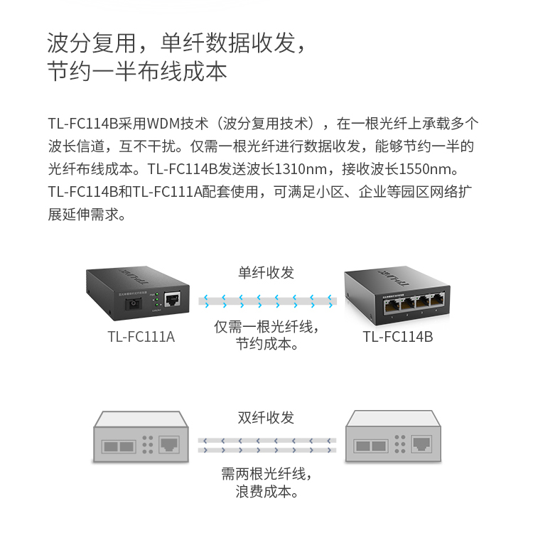 TP-LINK TL-FC114B 百兆单模单纤光纤收发器