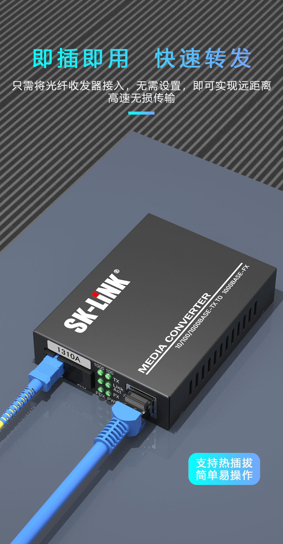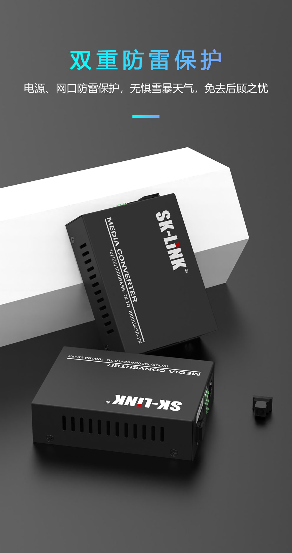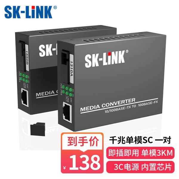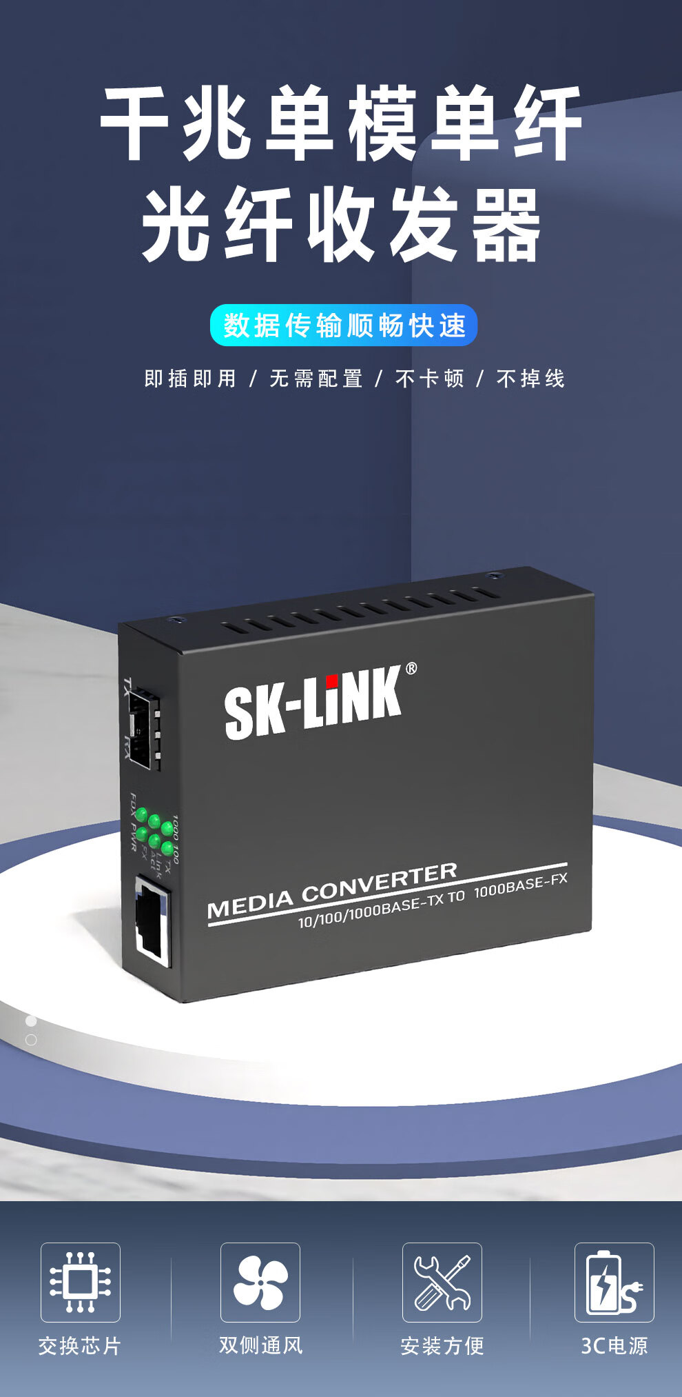 SK-LINK 光纤收发器电信级千兆单模单纤光纤转网线光电转换器SC接口3km 一对装