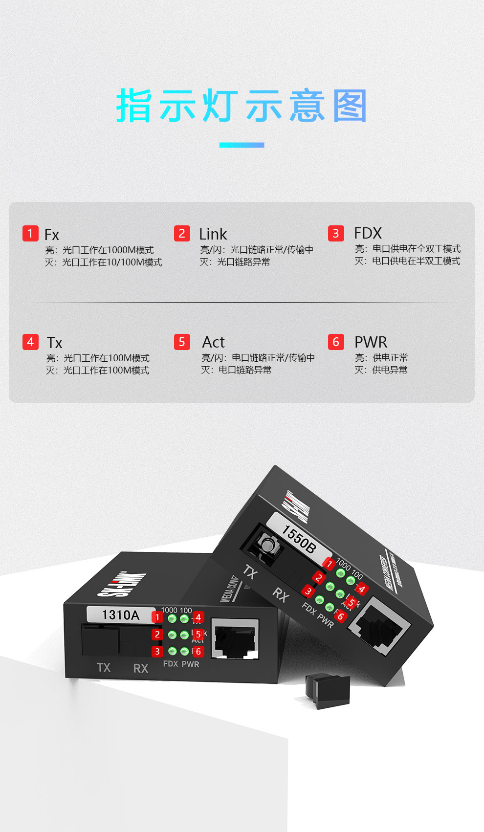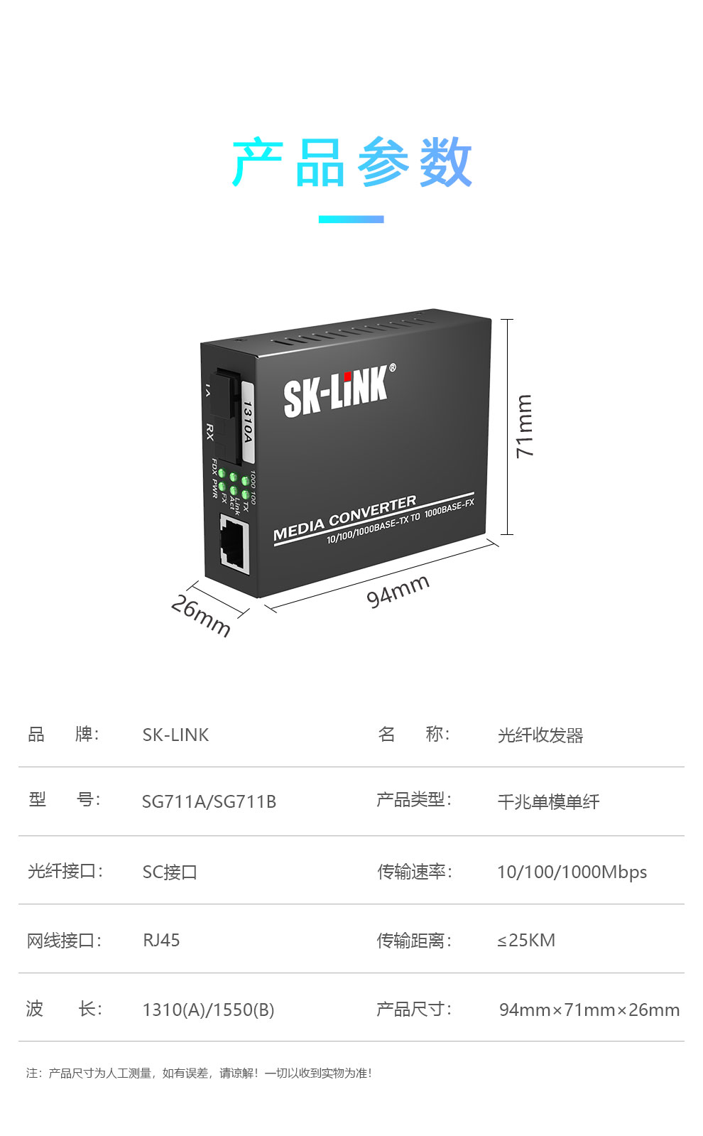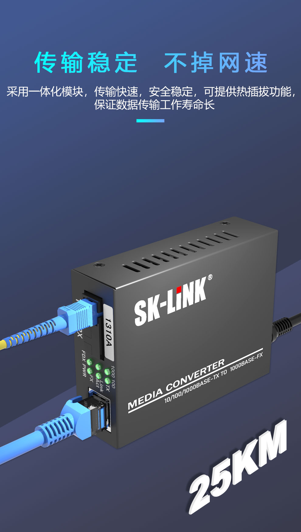 SK-LINK 光纤收发器电信级千兆单模单纤光纤转网线光电转换器SC接口3km 一对装