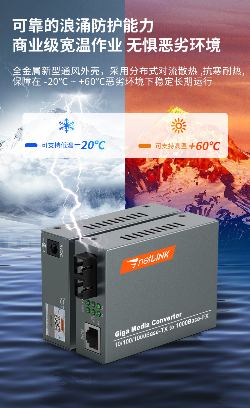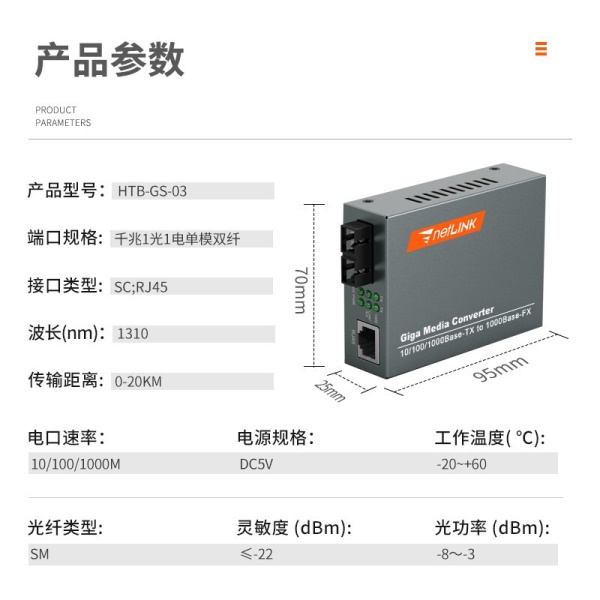 netLINK HTB-GS-03 光纤收发器 千兆单模双纤光电转换器20km 0-20公里 DC5V