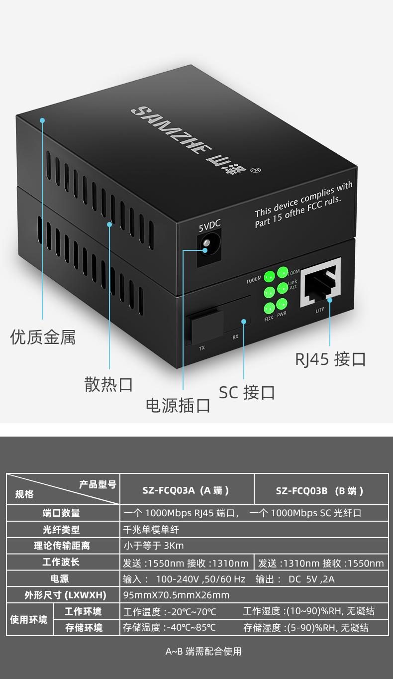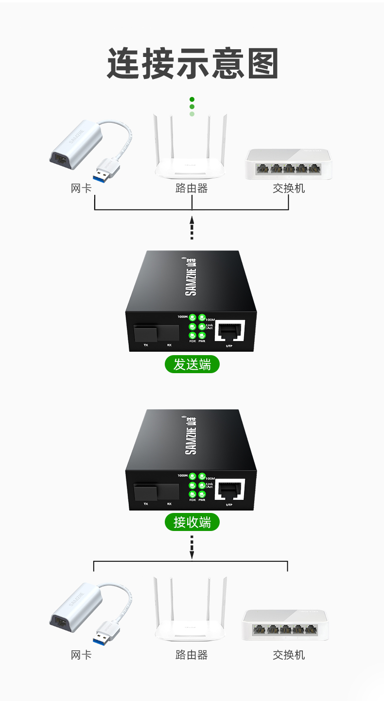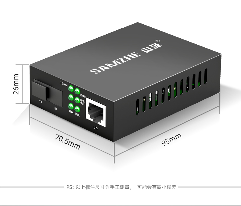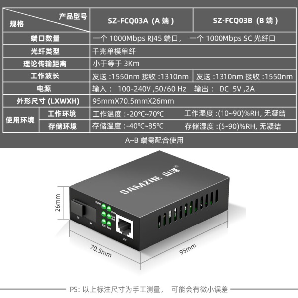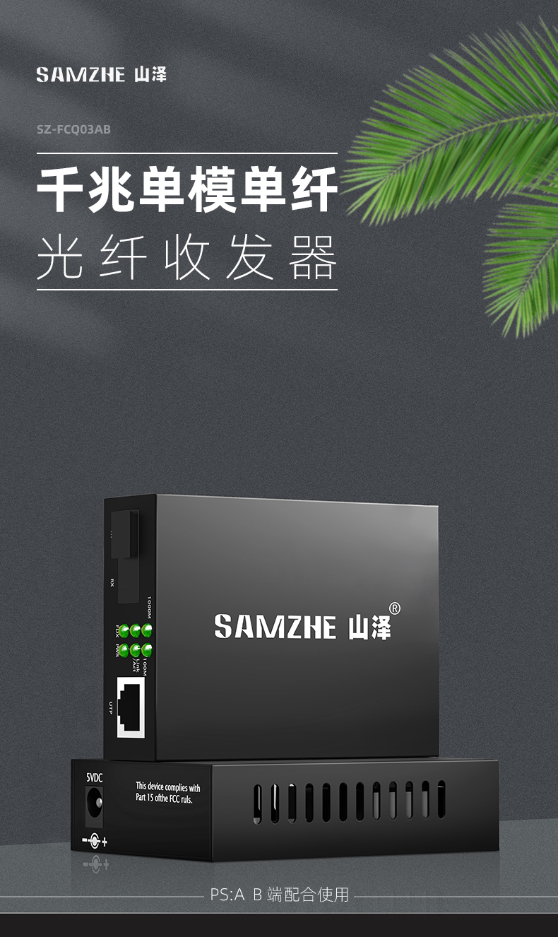 山泽(SAMZHE)电信级光纤收发器 单模单纤光电转换器 网络监控SC接口 千兆自适应光收发器3KM 一对