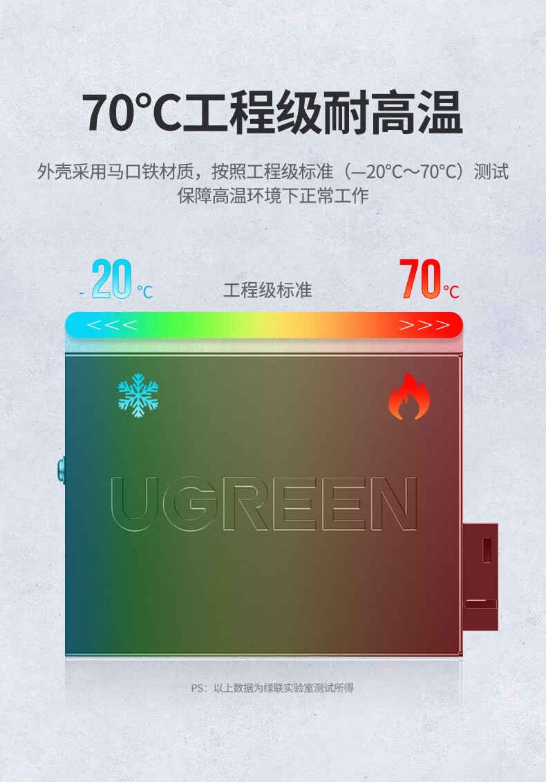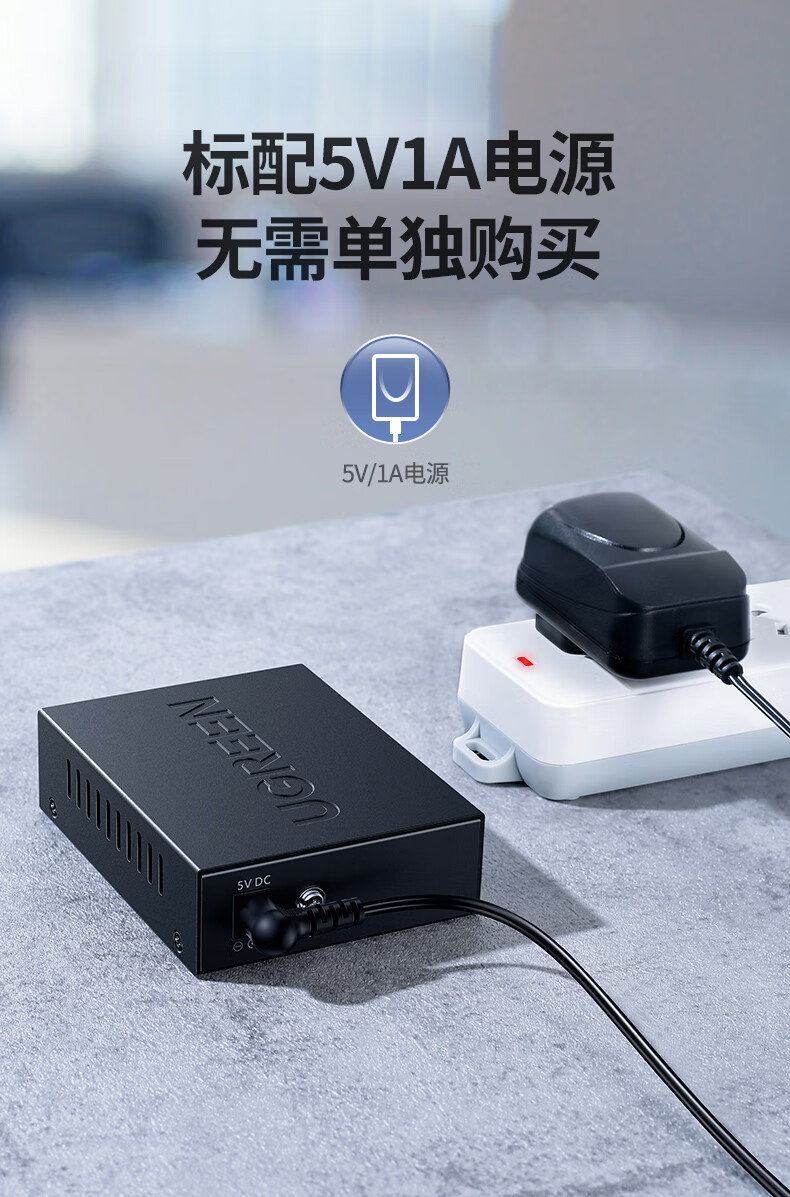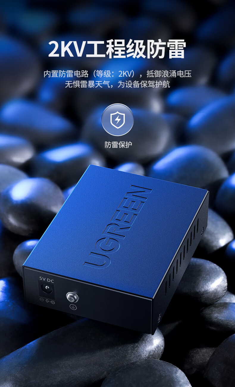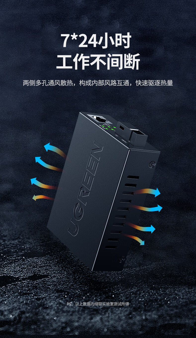 绿联(UGREEN)百兆单模双纤光纤收发器 光电转换器 SC接口电信级远距离网络传输器 单只装 0-20KM