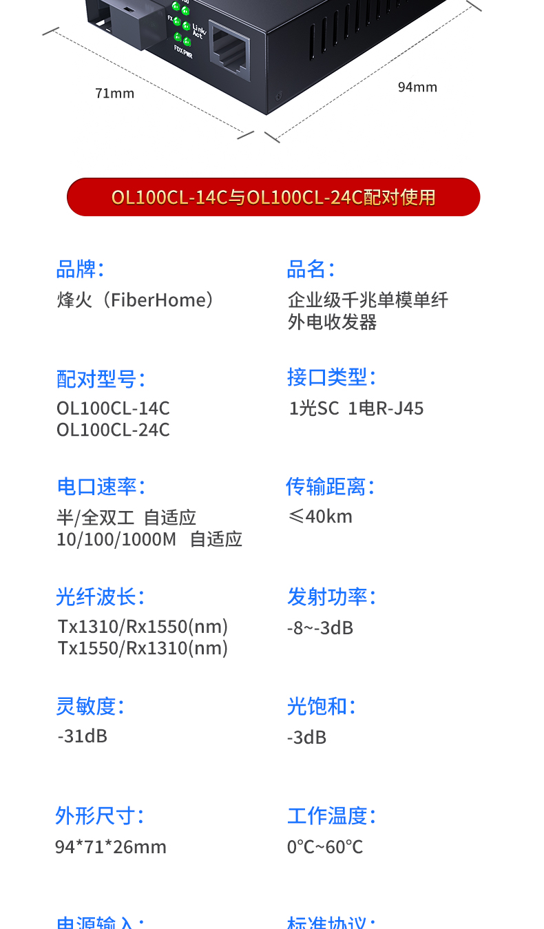 烽火(FiberHome)OL100CL-24C 光纤收发器