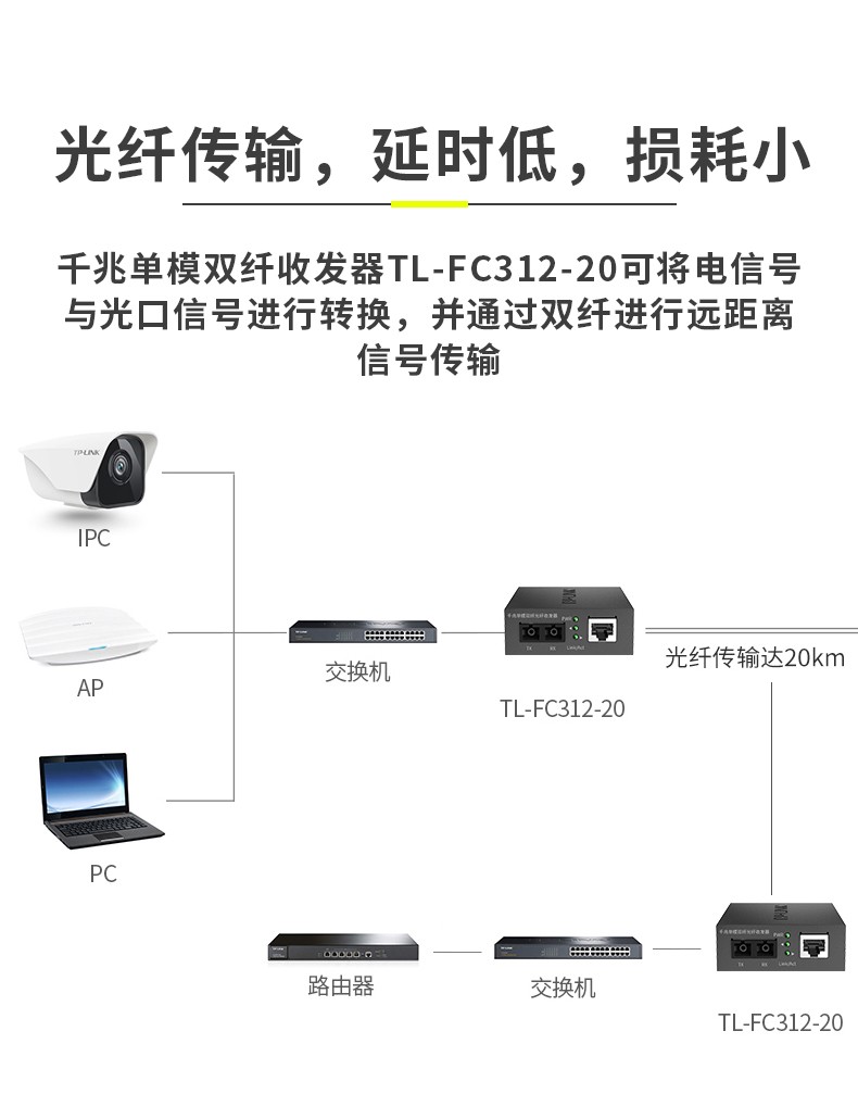 TP-LINK TL-FC312-20 单模双纤20公里千兆光纤收发器 SC口光电转换器一对价