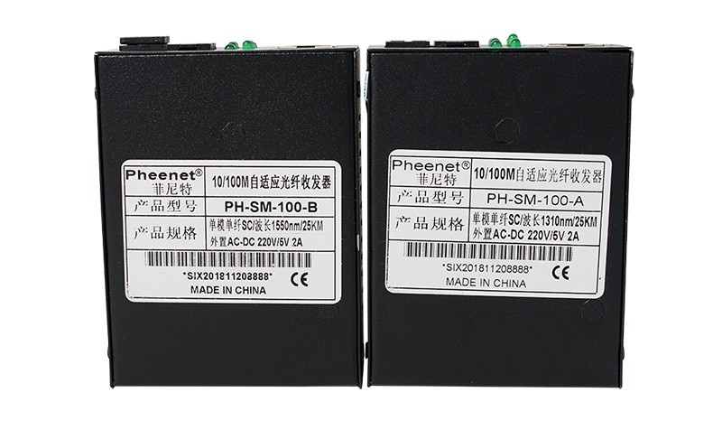 菲尼特 Pheenet光纤单纤百兆收发器千兆单模光电转换器网络 光收发器一对2台传输