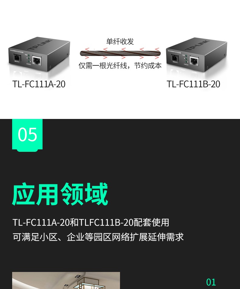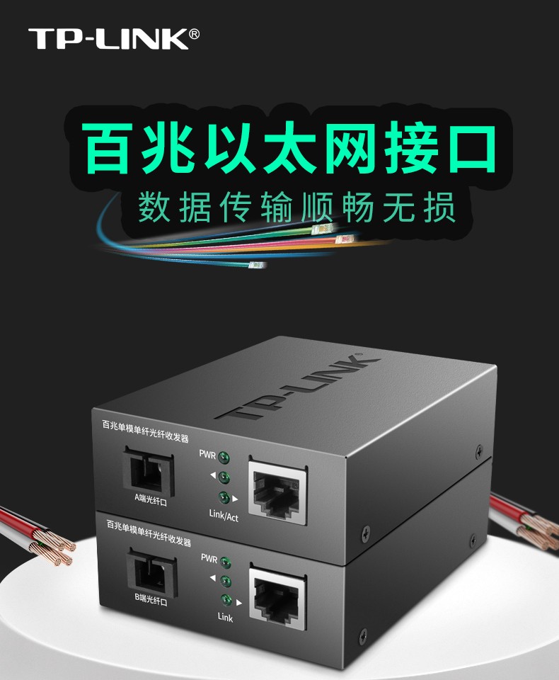 TP-LINK TL-FC111A TL-FC111B 百兆单模单纤光纤收发器光电转换器1光4电