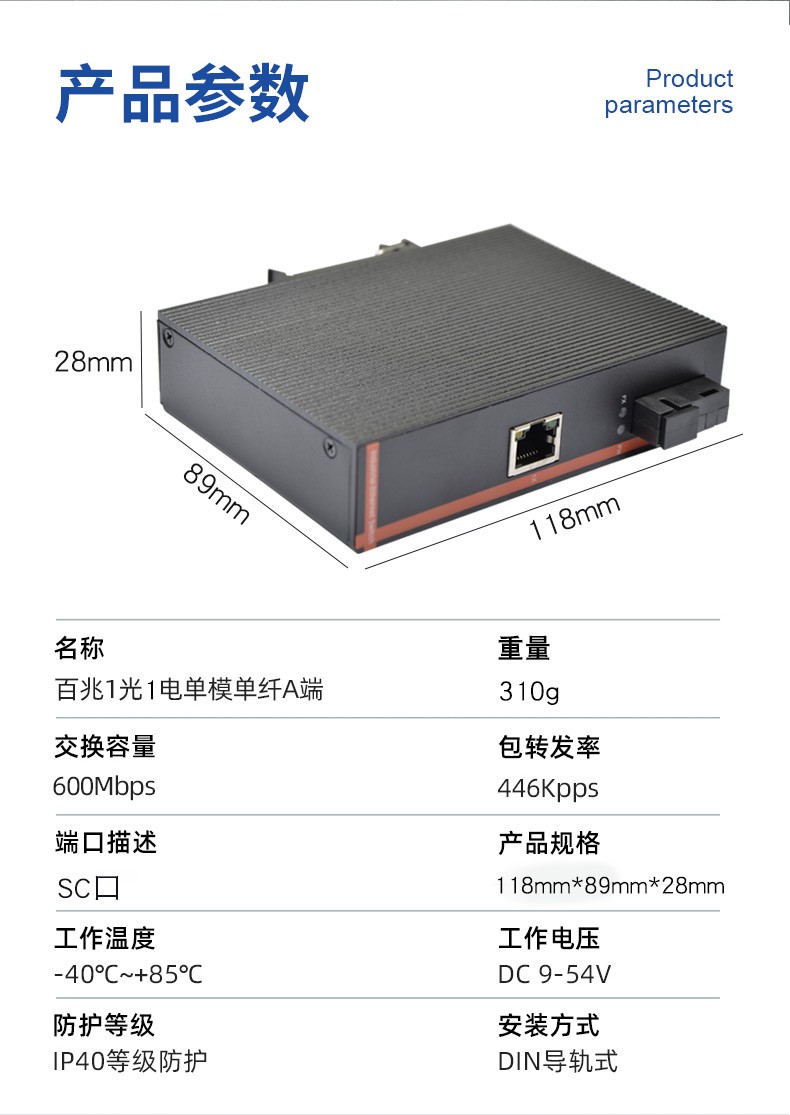 HAOHANXIN haohanxin工业级百兆1光1电SFP单纤单模光纤收发器导轨式非网管交换机
