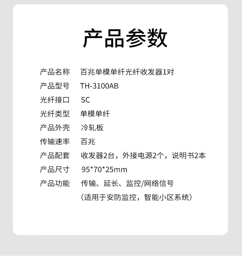 汤湖 SNB-3100-A/B百兆单模单纤收发器光纤收发器光电转换器A端/B端1台