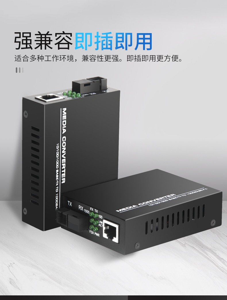 汤湖 GS-03-AB千兆单模单纤多摸双纤光纤收发器千兆光电转换器外置电源