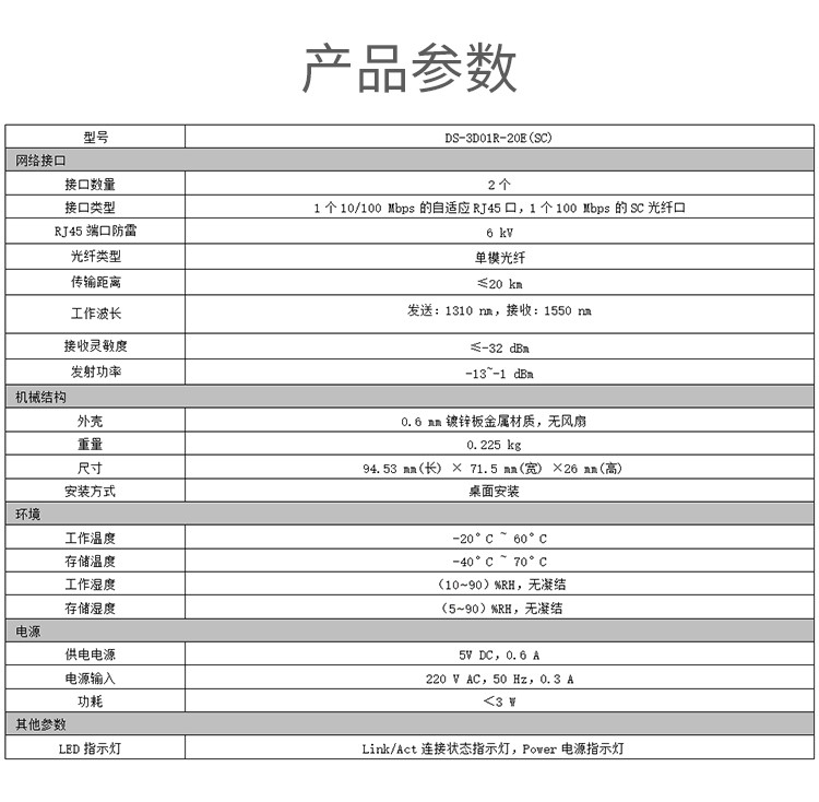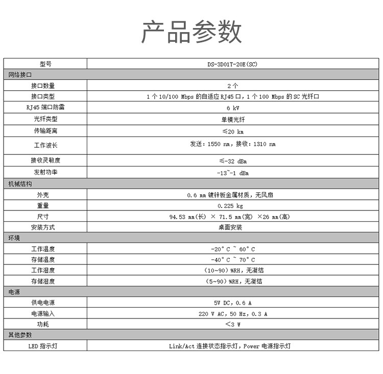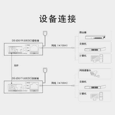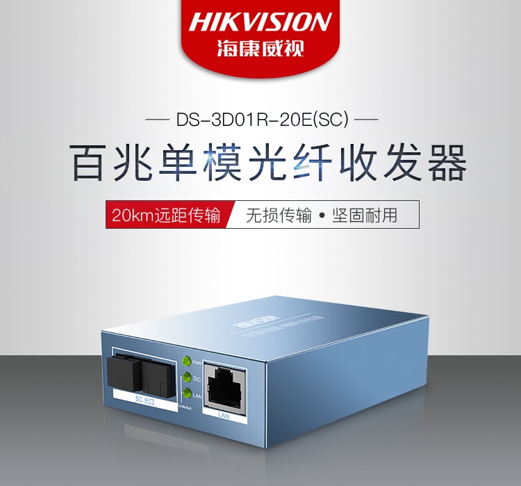 海康威视光纤收发器 百兆千兆网络监控单模单纤光电转换器家庭商用远距离传输光纤传输器安防设备