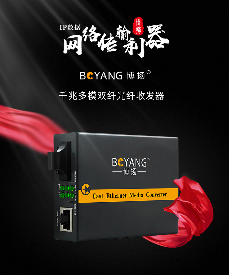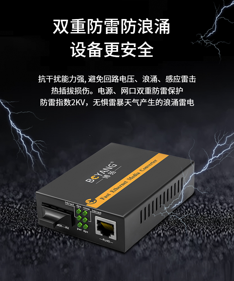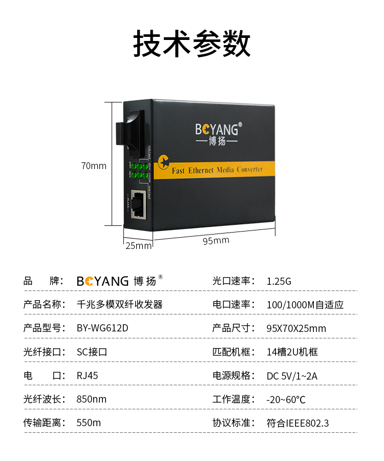 博扬(BOYANG)BY-WG612D 千兆多模双纤光纤收发器 光电转换器 光纤转网线 防雷SC接口 550m外置电源
