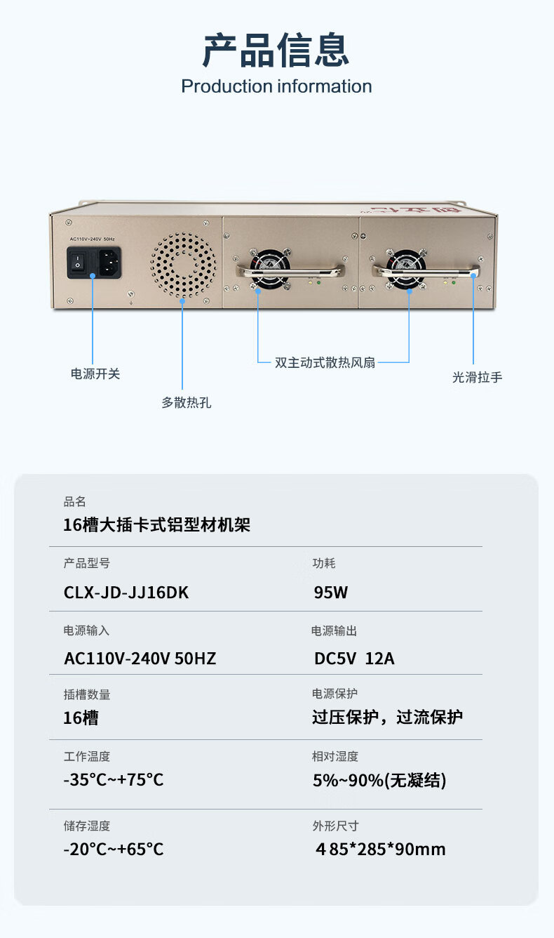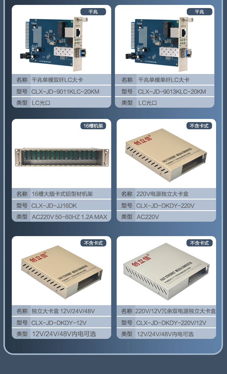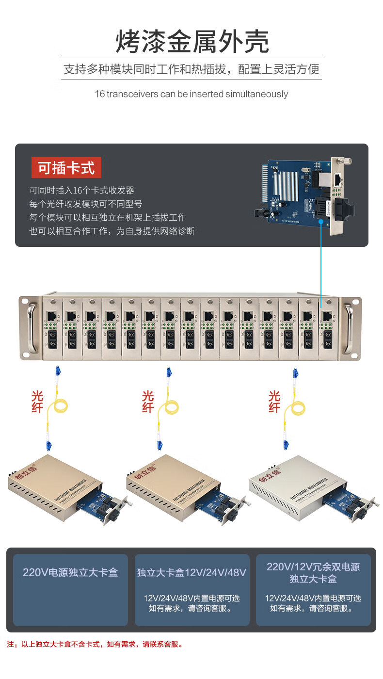 创立信 100M光纤收发器大插卡2U-16槽铝型材机架专用 百兆单模双纤LC大卡 1片