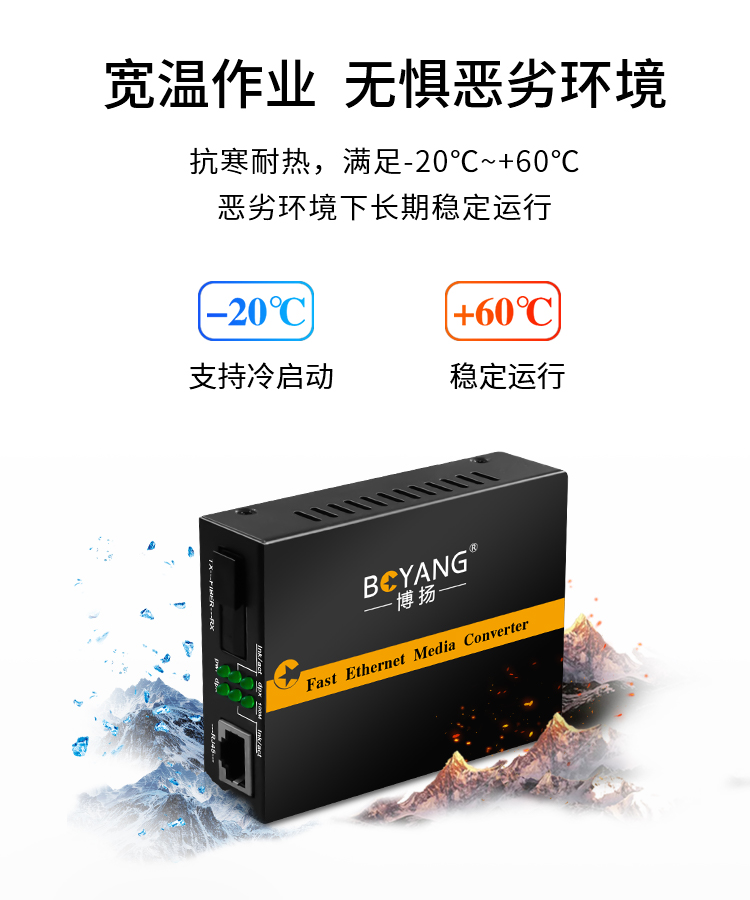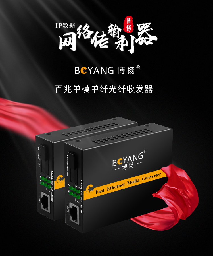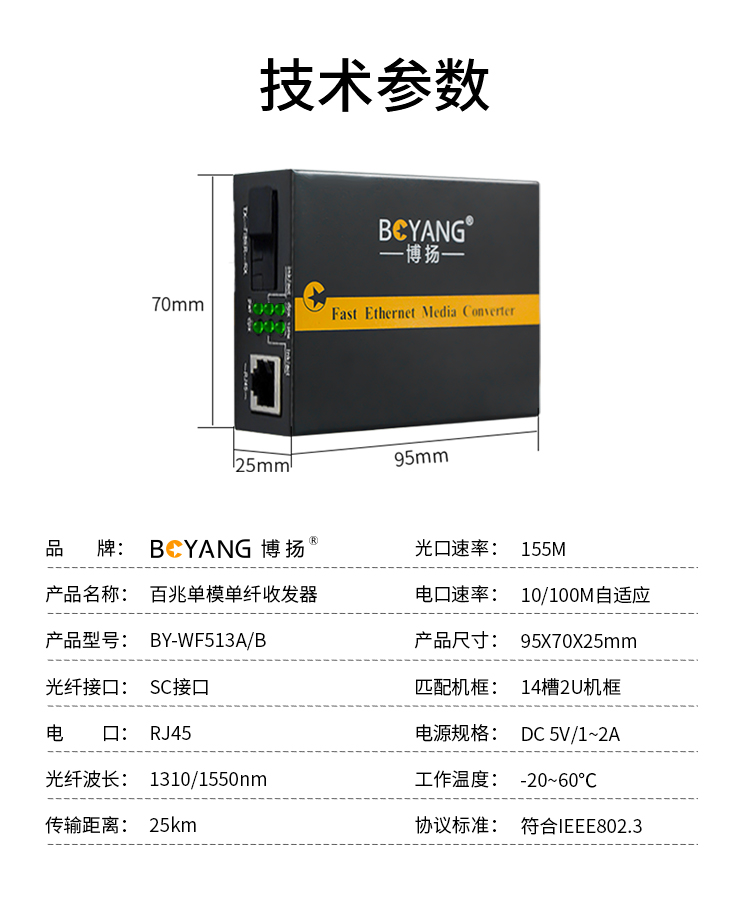 博扬(BOYANG)BY-WF513A/B 百兆单模单纤光纤收发器 光电转换器 支持14槽机架 防雷SC接口