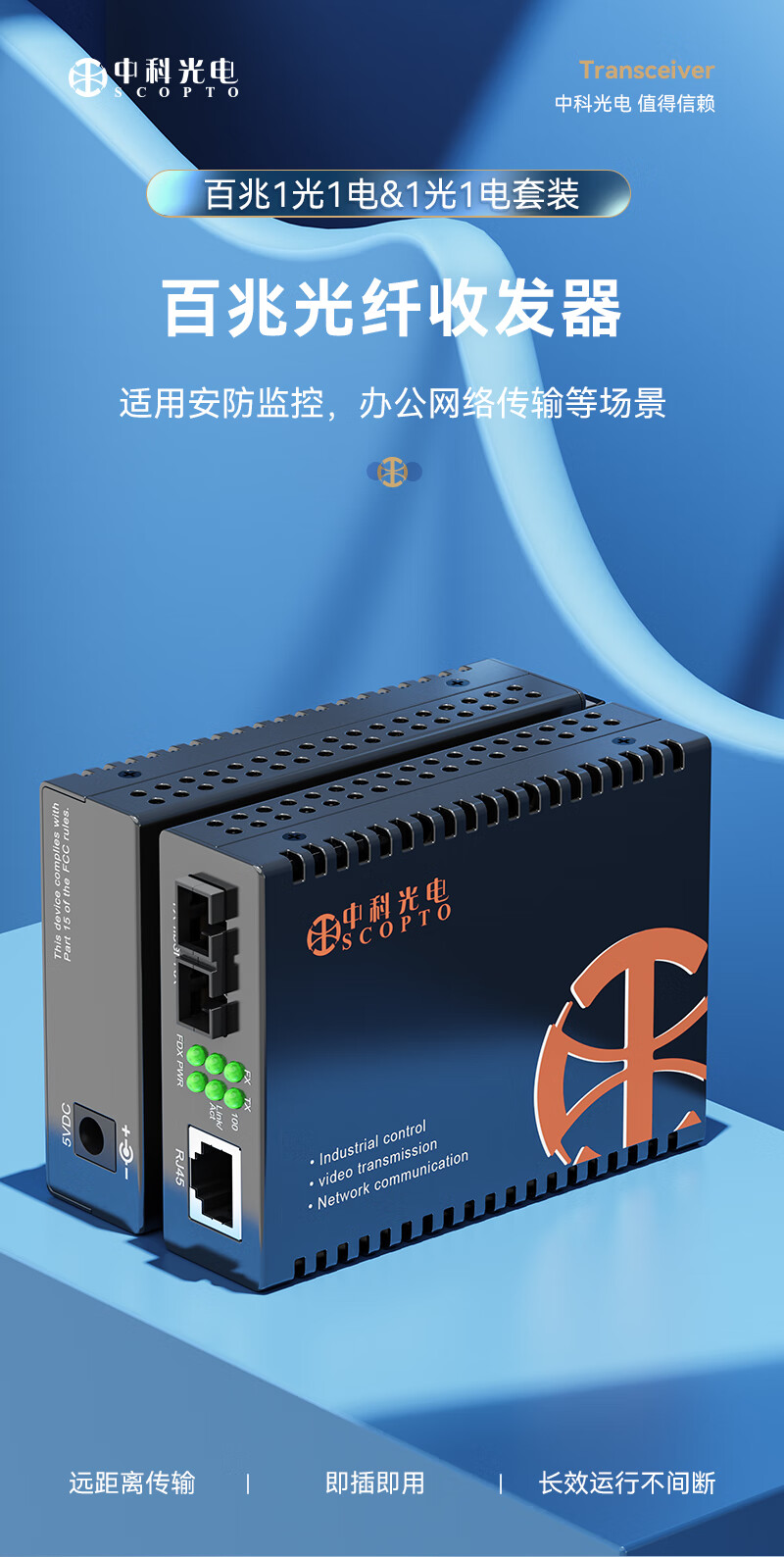中科光电 百兆多模双纤光纤收发器 光电转换器 外置电源 SC接口