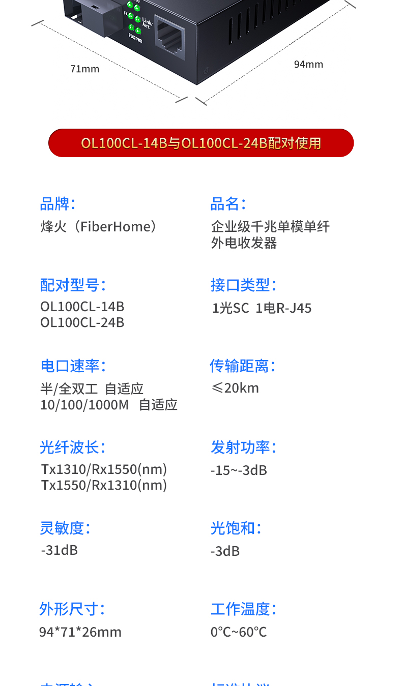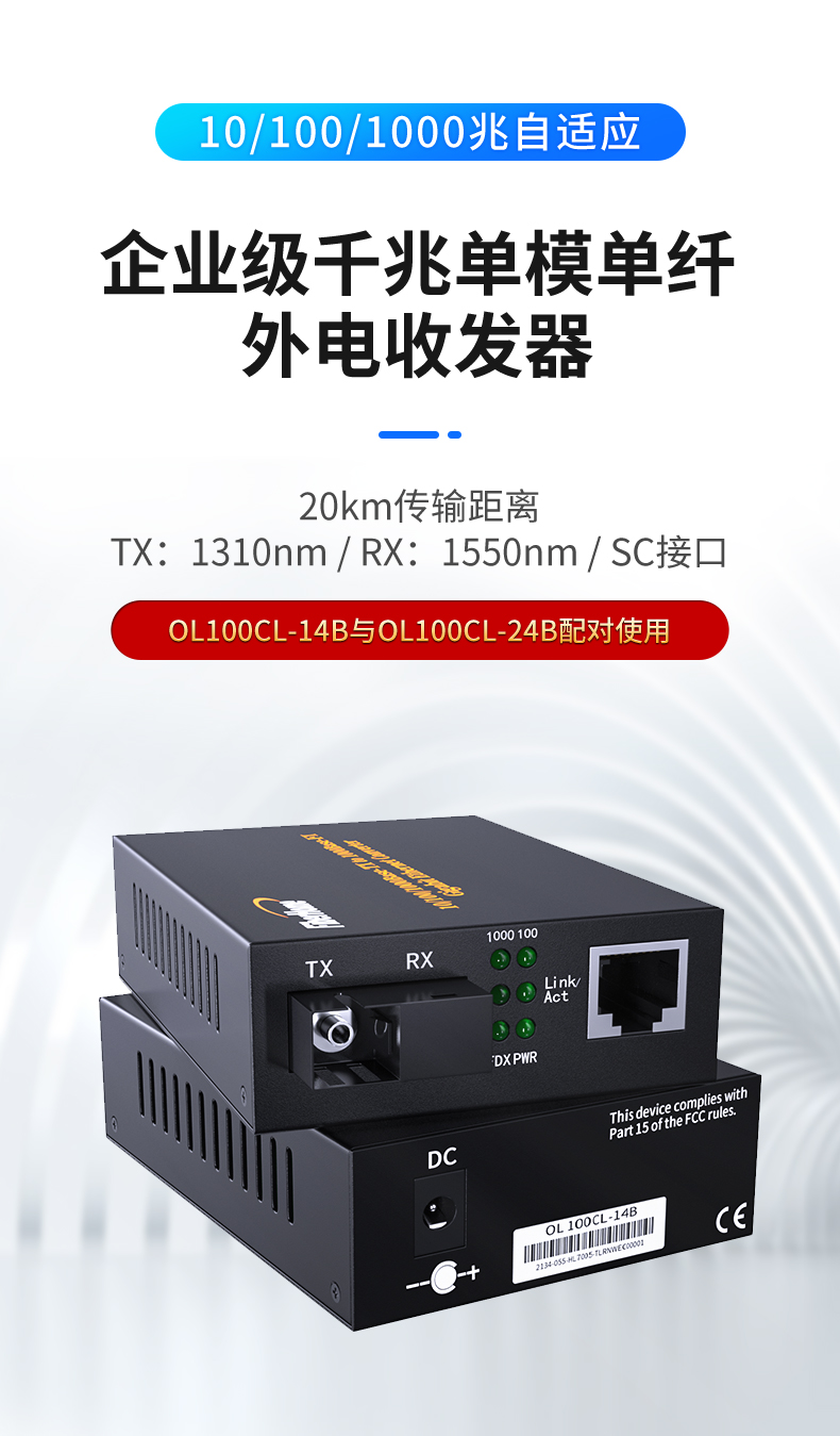 netLINK HTB-4100AB 千兆单模单纤光纤收发器 光电转换器 外电 SC接口 一对价