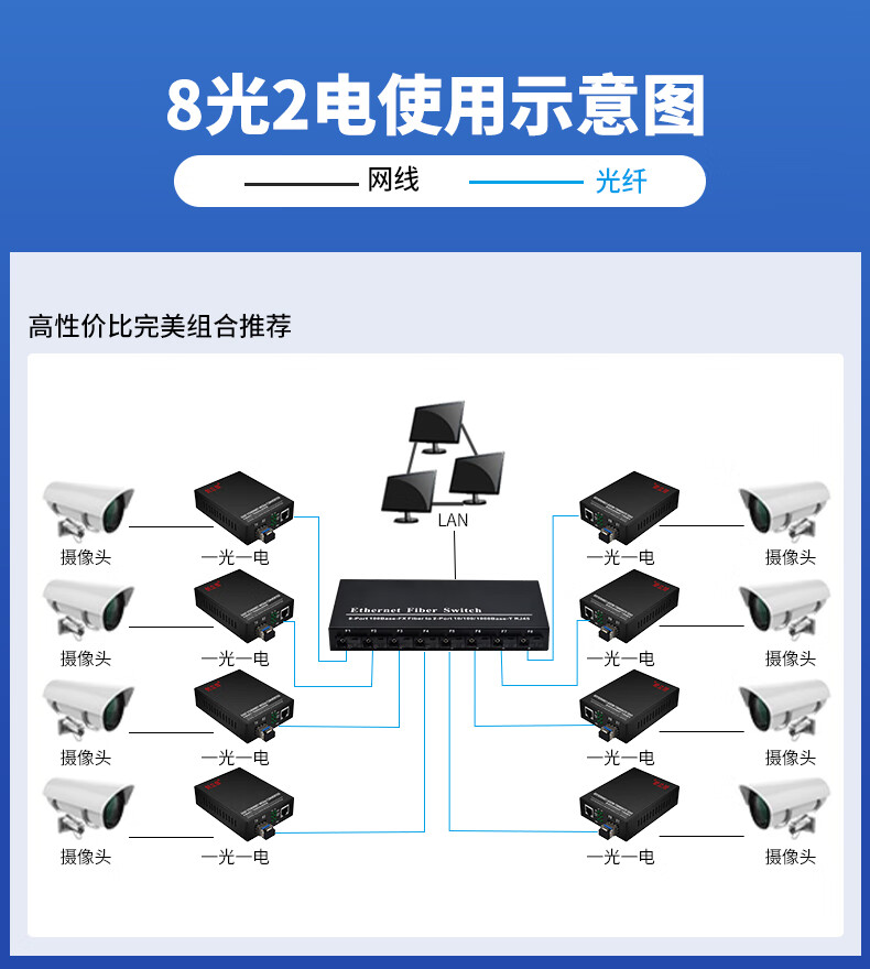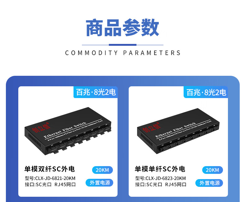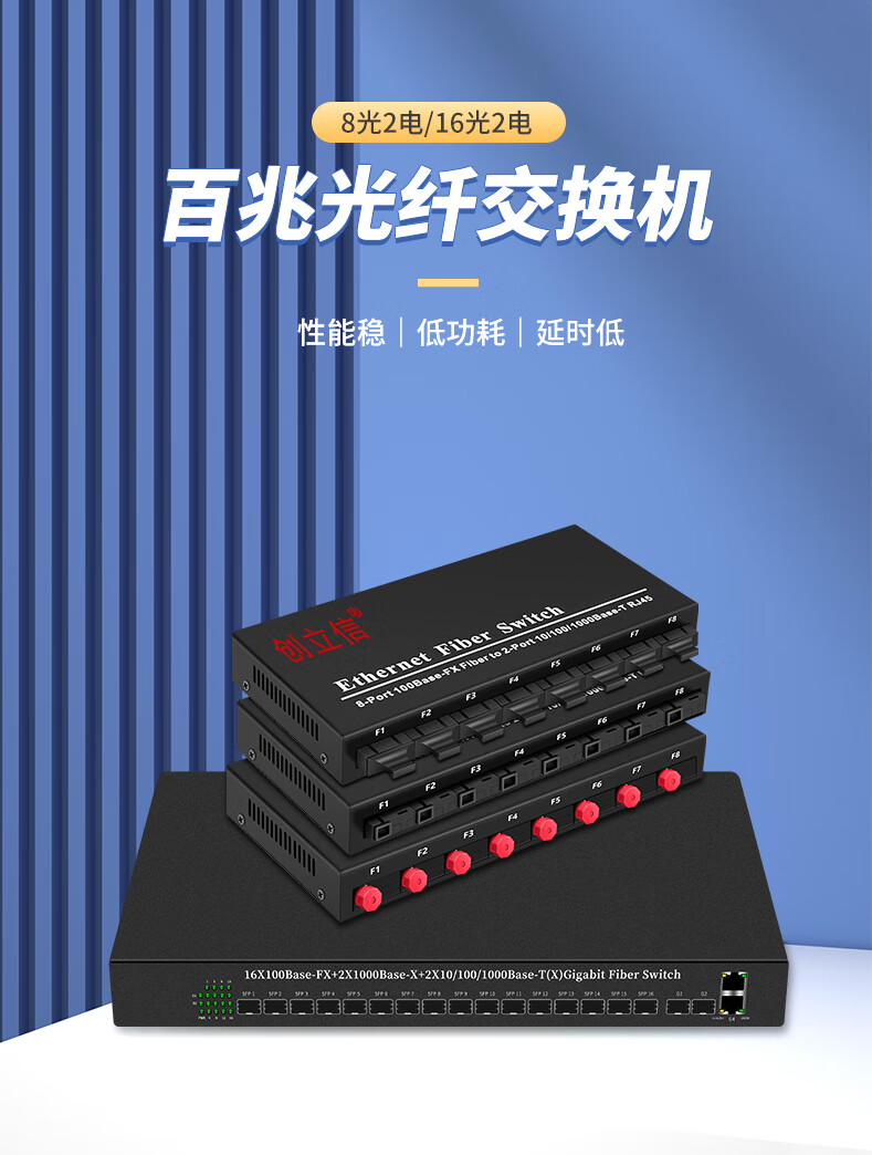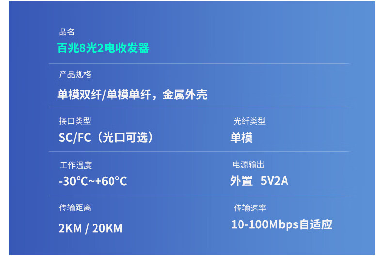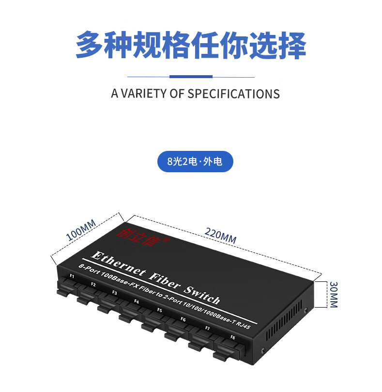 创立信 光纤收发器 光电转换器 网络光端机 百兆8光2电单模单纤FC外电20KM 1台