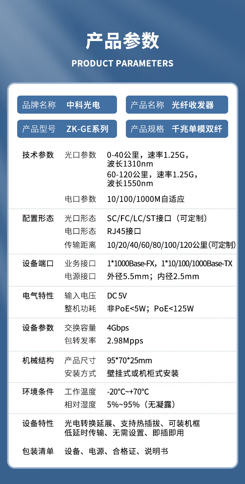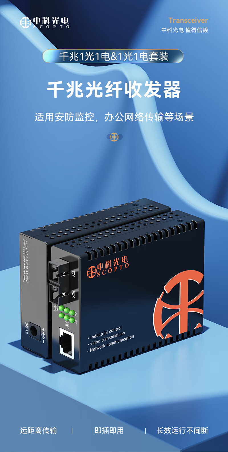 中科光电 光纤收发器千兆单模双纤 光电转换器单模双纤 电信级 外置电源 SC接口 10公里